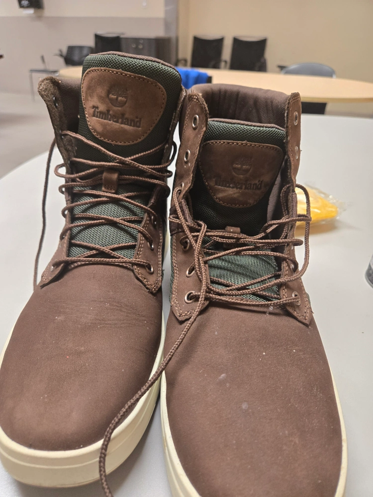 Selling a pair of Timberland boots in a nice brown leather! They're in great shape and ready for a new home. The size is US 12.