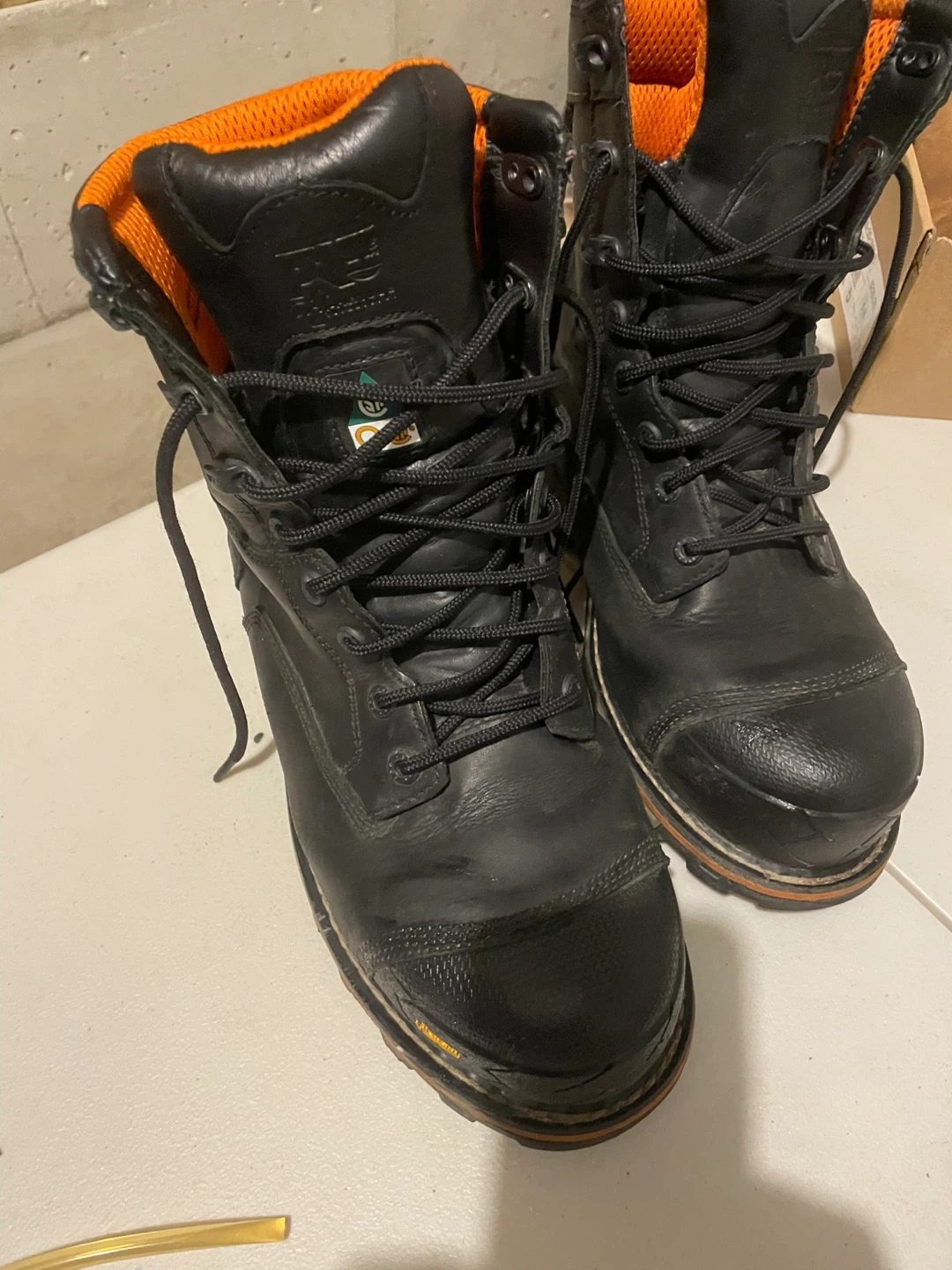 Selling a pair of Timberland PRO Men's Boondock 8 Inch Composite Toe Plate Waterproof Boots. These are a size 10W (US). They show some signs of wear but are still in good working condition!