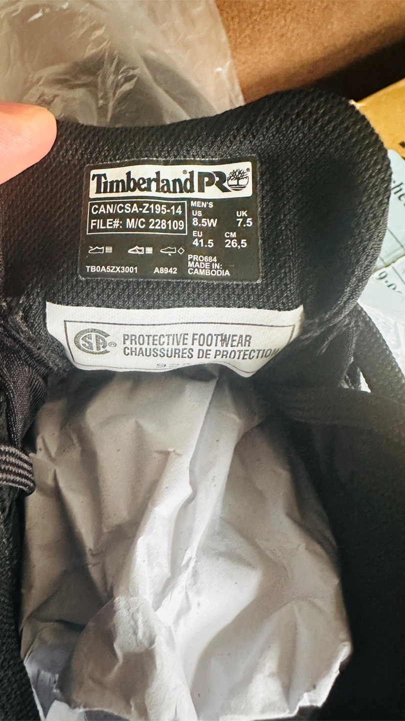 102Selling a pair of Timberland PRO steel safety toe shoes. They are men's size 8.5W (US). These shoes are designed for safety and comfort on the job site!