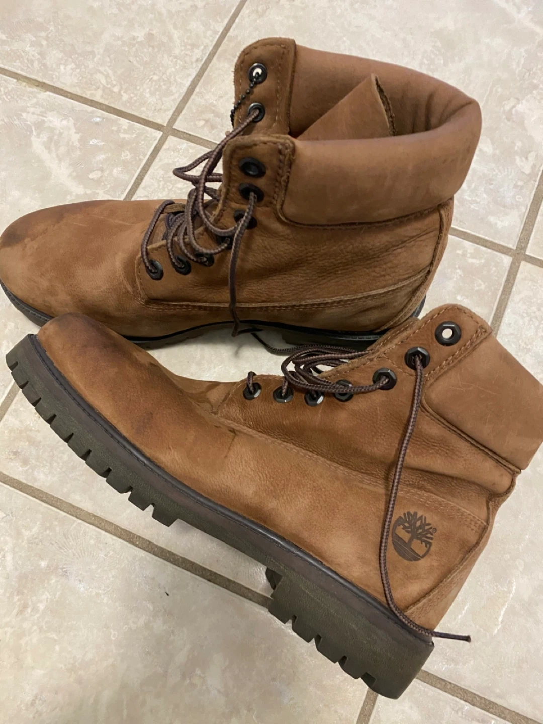 28Selling a pair of Timberland roll top boots in size 9M. These boots feature a genuine leather upper and man-made outsole. They are in good condition and ready for a new home!