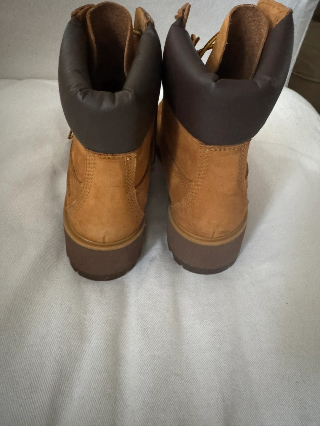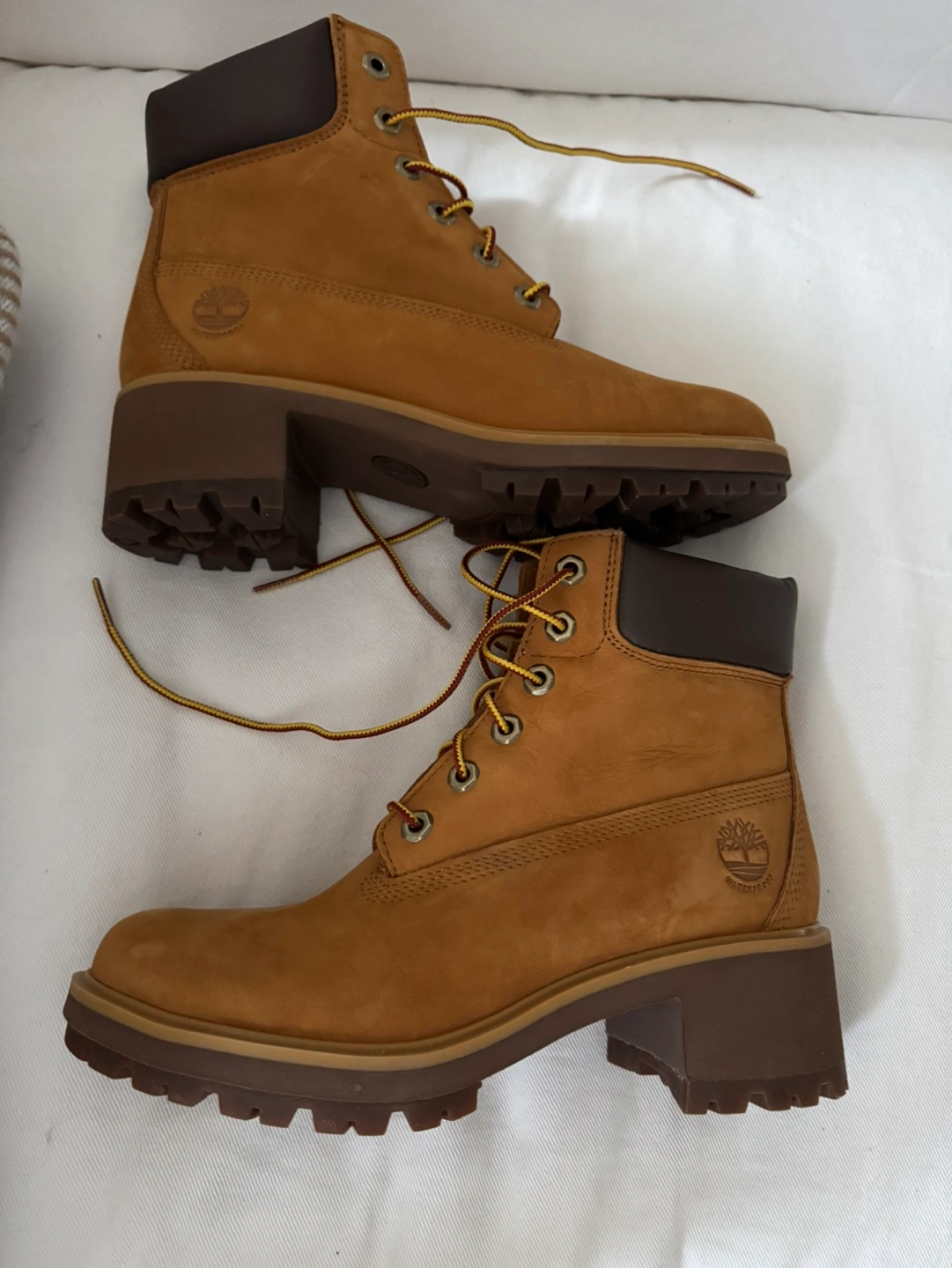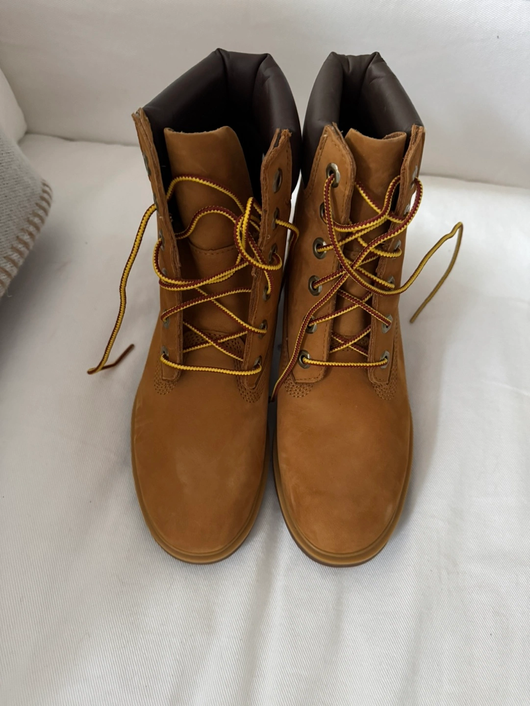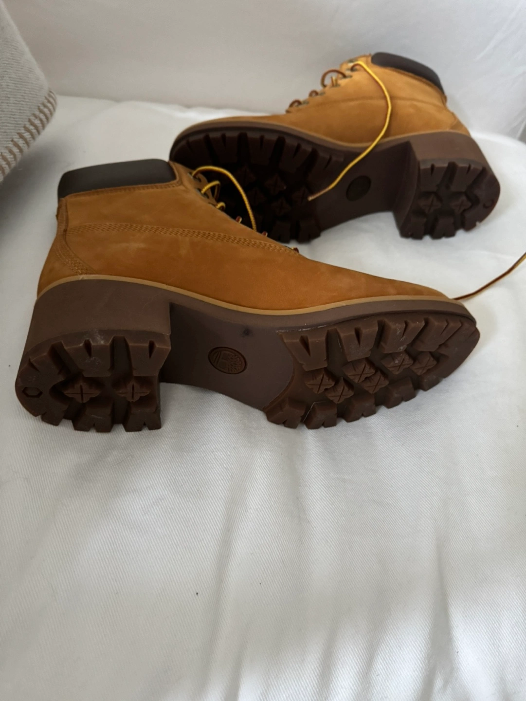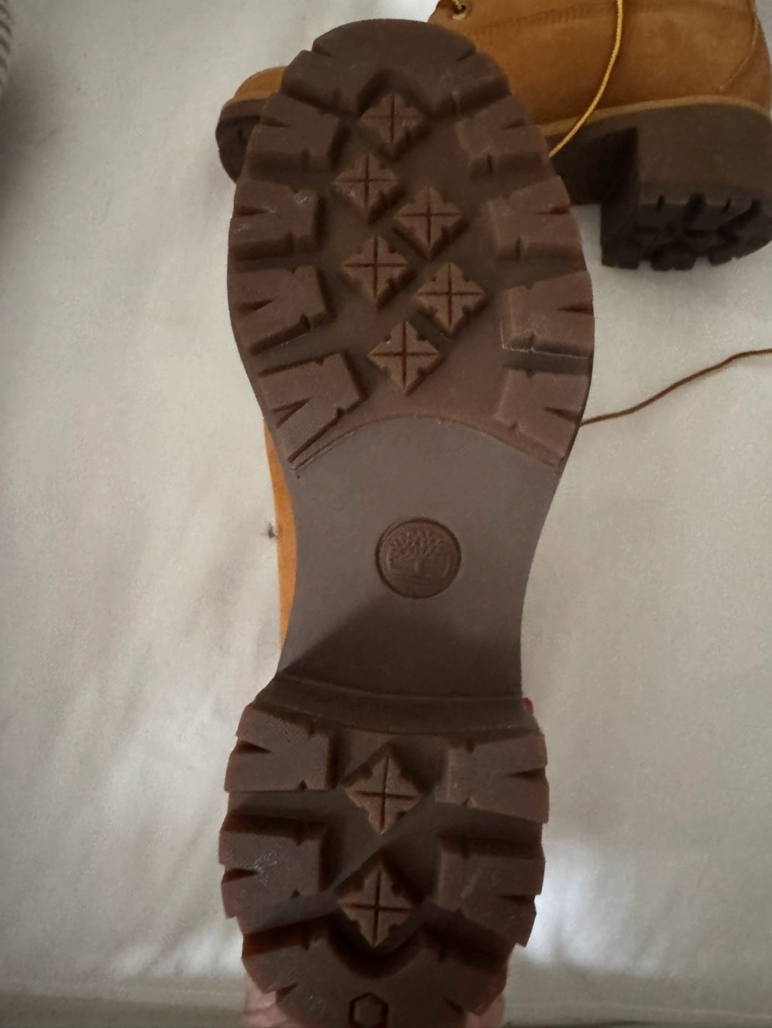 Tan leather boots with laces. They have a thick rubber sole and a bit of a heel for an extra bit of fashion. Paid 225.00 and never worn