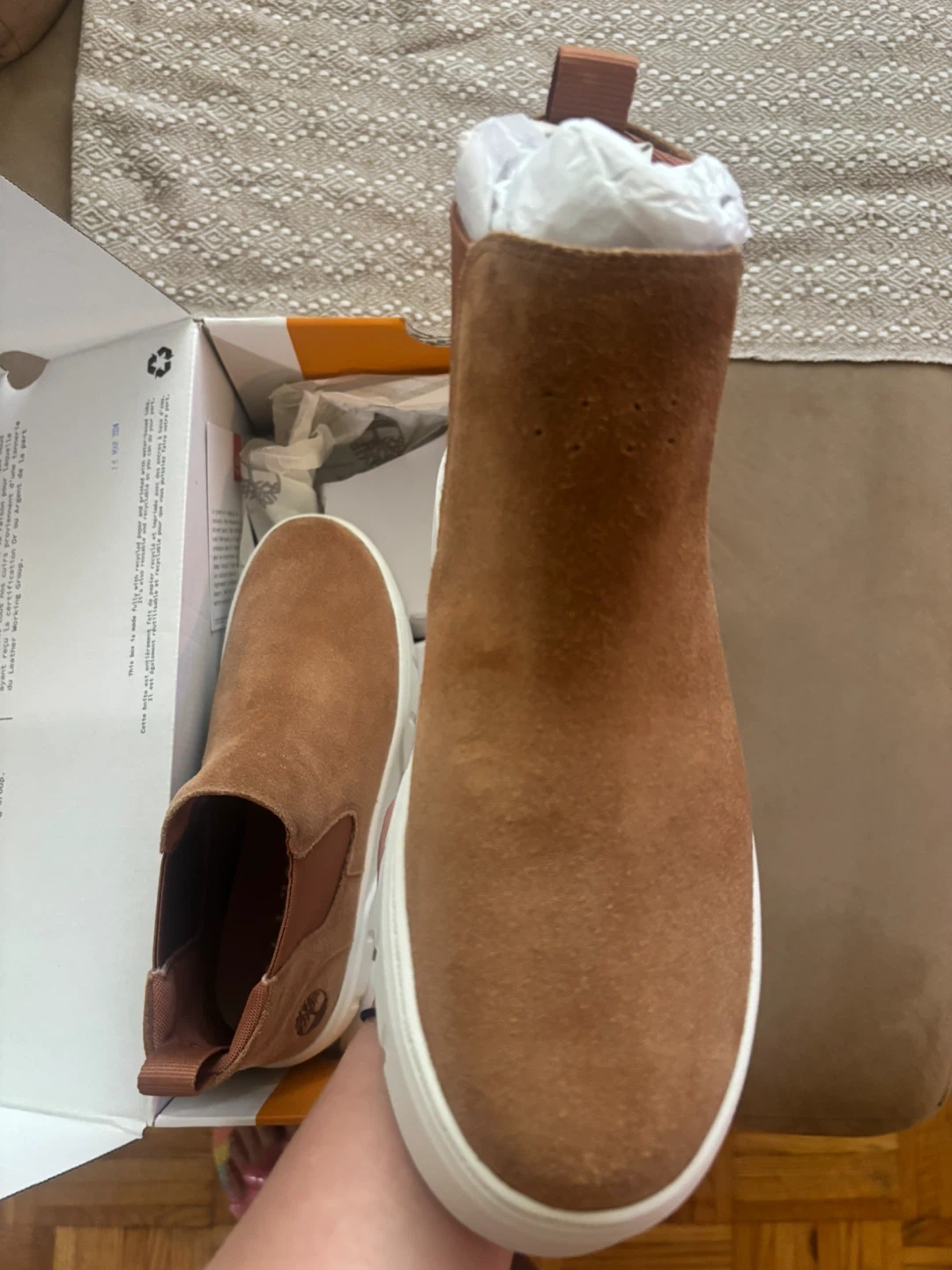 10Selling a pair of Timberland Women's Courmayeur Valley Chelsea Boots in a beautiful brown colour. These boots are in excellent condition and come with the original box. They feature a comfortable Chelsea boot design with a stylish platform sole. Perfect for adding a touch of rugged elegance to any outfit!