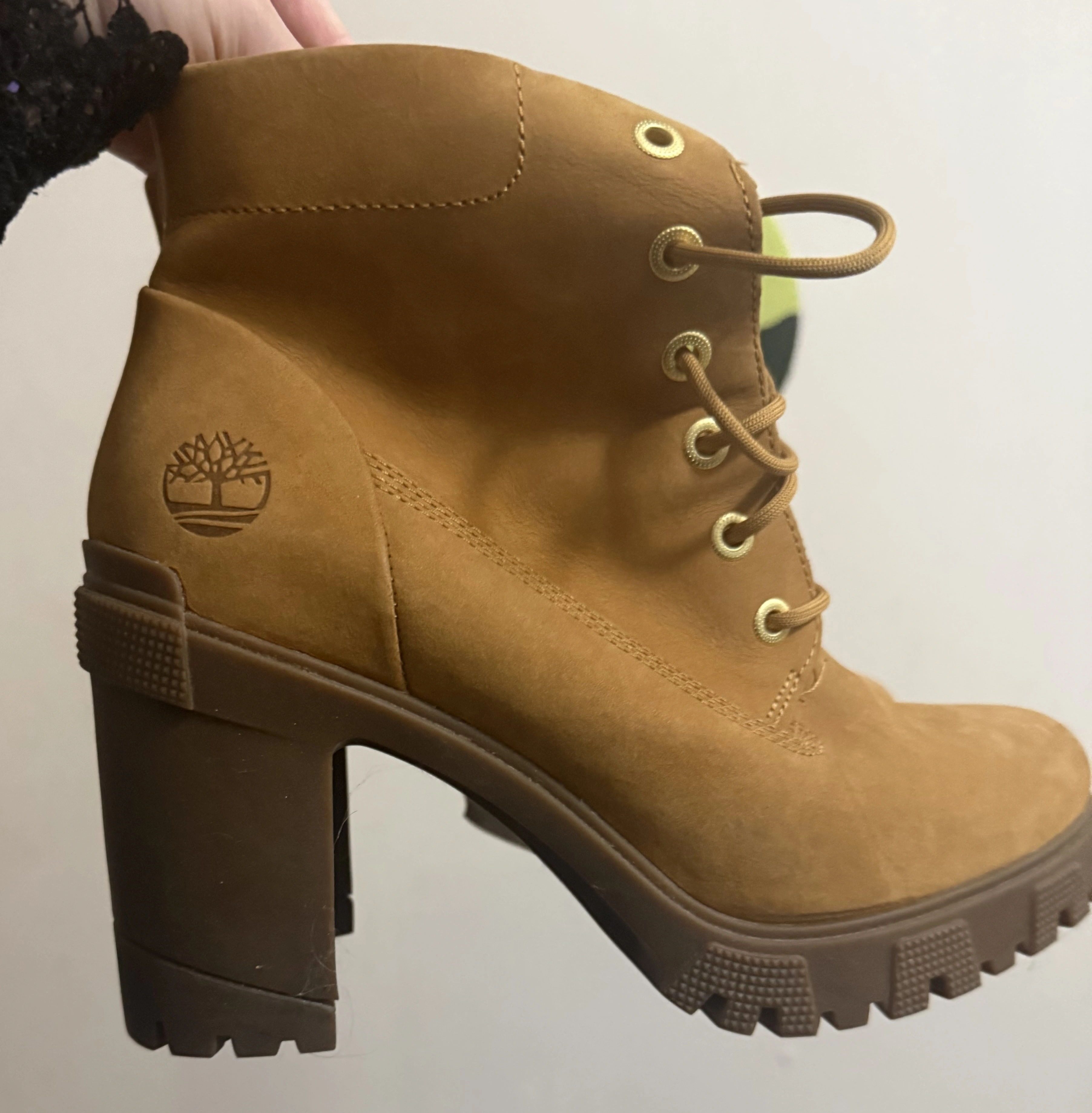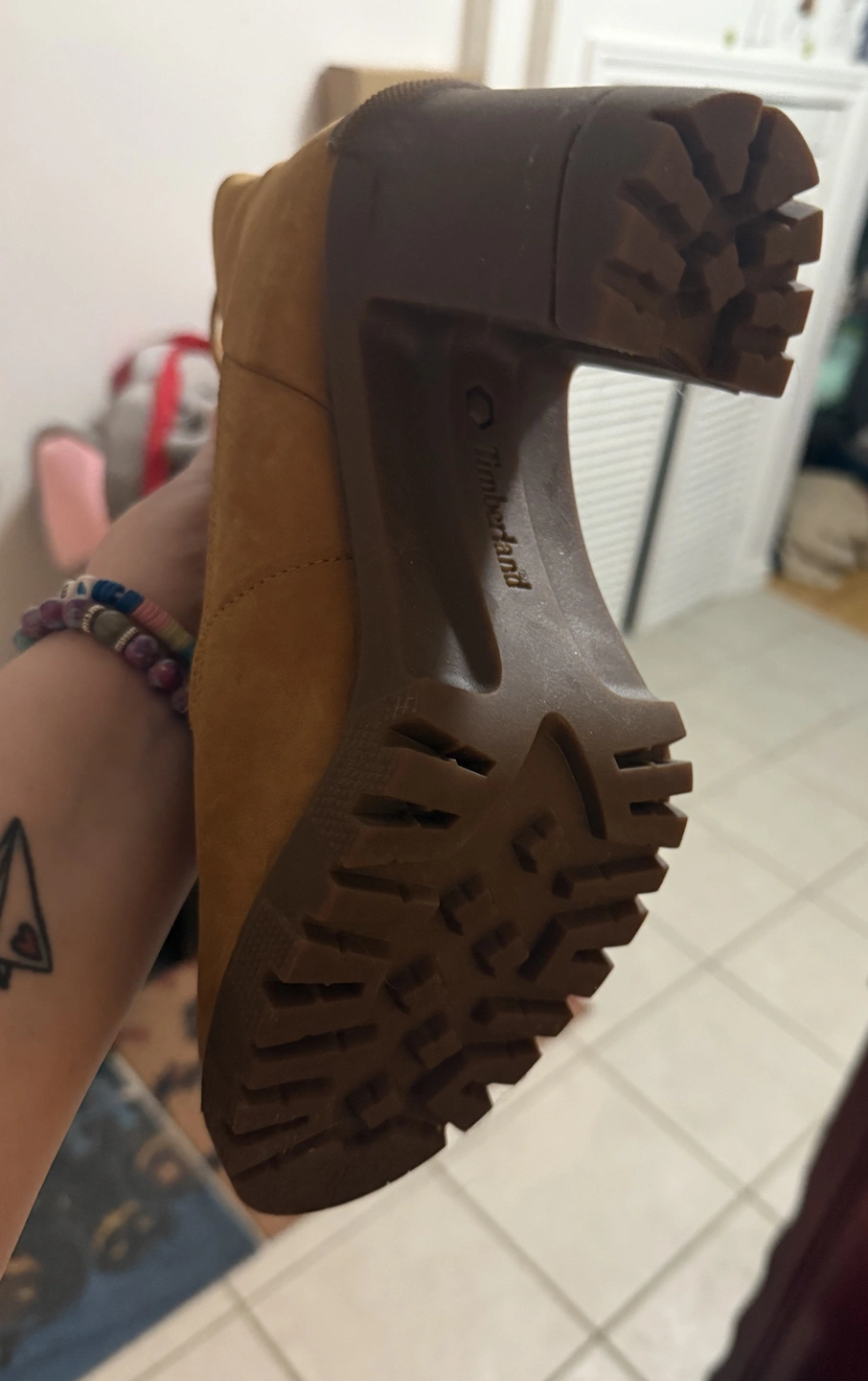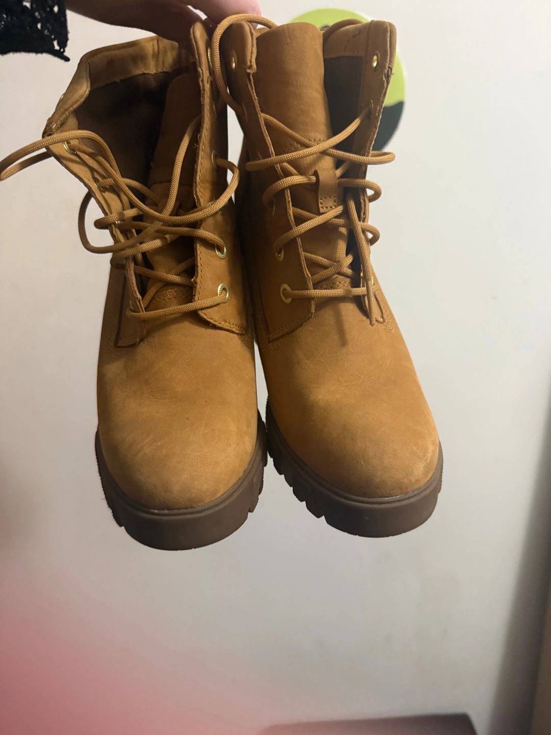 $130 (Retail $200+) Classic Timberland style with a feminine twist! Worn only twice - excellent condition. Features: Size 9.5 Premium wheat nubuck leather 3-inch chunky block heel Signature Timberland tree logo Lace-up with metal eyelets Durable rubber lug sole for traction Padded collar for comfort Perfect for fall/winter styling! These authentic Timberland boots can be dressed up or down. No scuffs, no damage - practically brand new! Comes from a clean, smoke-free home. Pickup Locations: Pickering- I live here Scarborough- I work here Monday-Friday, 9:00-5:00