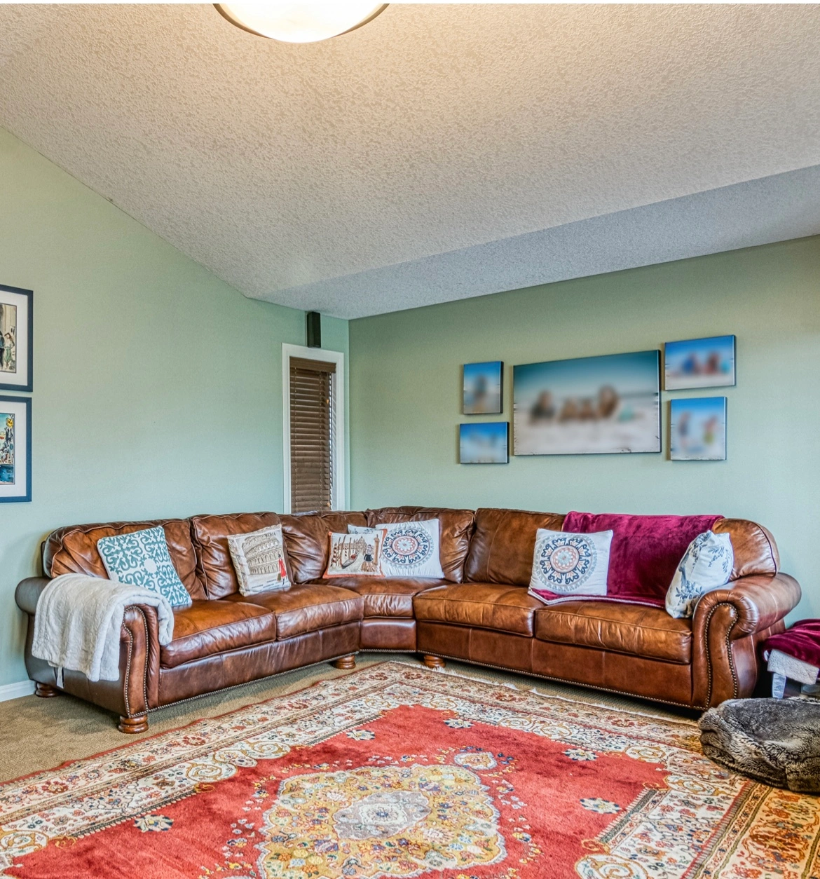 Timeless, top-of-the-line, real leather sectional in a rare, rich molasses color. Paid over 10,000 at an independent, furniture boutique in Calgary. Large, but easily taken apart for transportable, and easily put back together. Believe me, if I can do it, anyone can. Very sturdy & stable; Dimensions are 120" x 120", aka 10‘ x 10‘. Downsizing due new beginning, doesn’t fit great. Not looking near what was paid & open to offers. This luxurious piece that belongs somewhere it can be appreciated. Offer ample seating space, perfect for both large gatherings and cozy lounging. Crafted with premium, durable leather, it combines both beauty and functionality, ensuring years of comfort and elegance. The sectional's sturdy construction and timeless design make it a statement piece that elevates any living space. Ideal for those with a taste for sophistication and quality, this is a rare opportunity to own a truly high-end, investment-worthy furniture piece.