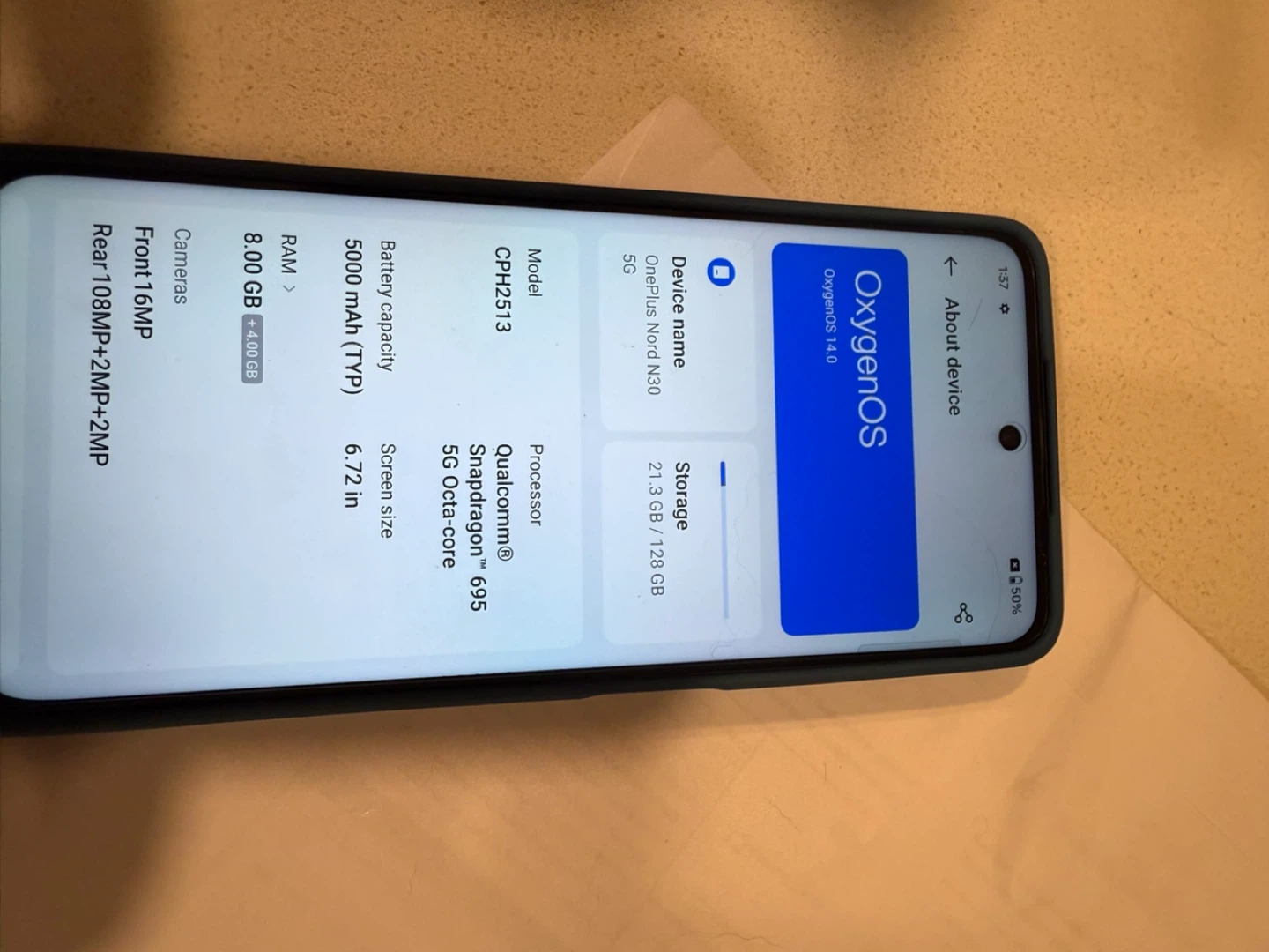 Selling a OnePlus Nord N30 5G in a teal colour! It comes with a matching teal case. The phone has 8GB of RAM and 128GB of storage. The screen size is 6.72 inches. It also features a Snapdragon 695 5G Octa-core processor and a 5000 mAh battery. I bought this in April 2025 and used for about one month.