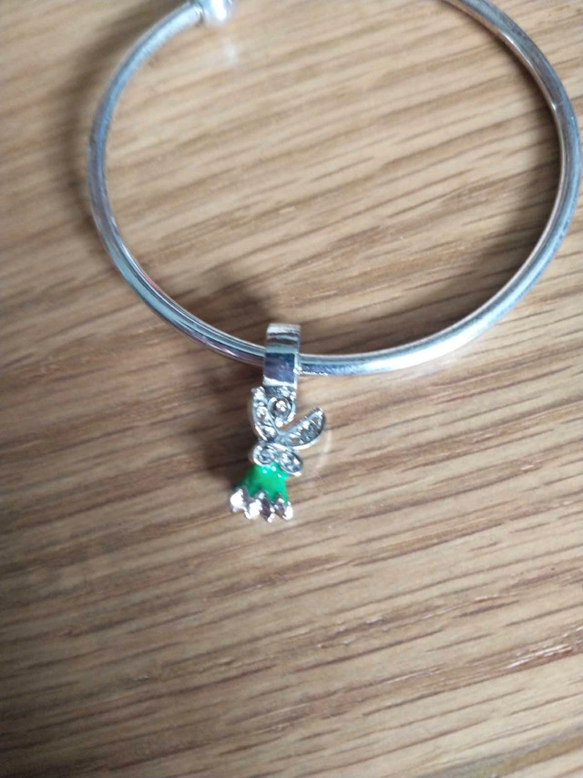 15Disney's Tinkerbell bracelet charm. Not a real Pandora charm, but it's a beautiful imitation and is good quality. Fits most bracelets. Bracelet NOT for sale. Pick up near Banwell and the Expressway.