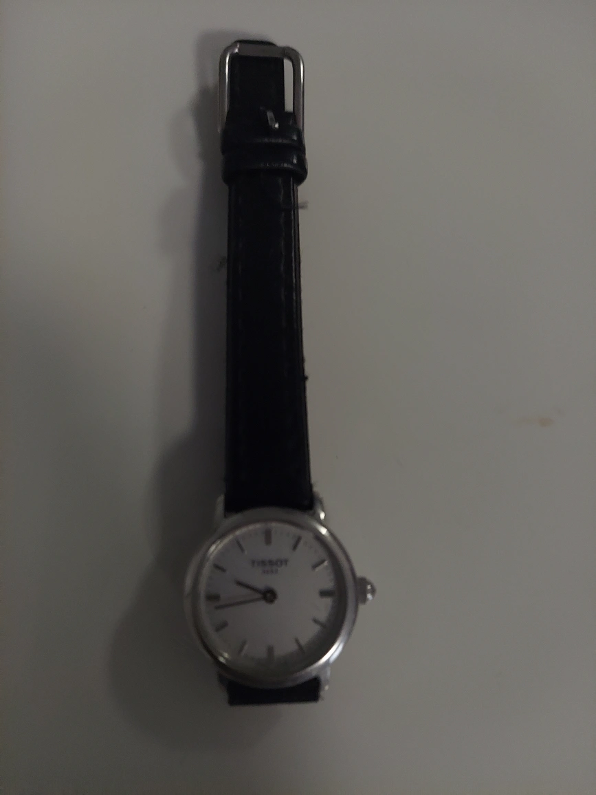 18Selling a Tissot ladies watch. It has a black leather strap and a silver-tone case. It's in great condition and ready to wear!