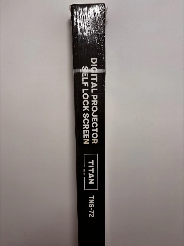 Get a professional projection screen with this new-in-box Titan TNS-72. This 72-inch manual self-locking screen is perfect for meeting rooms, classrooms, or your living room. Retractable and self-locking: it deploys with a simple gesture thanks to its ring and locks in position. 72 inch format (16:9/4:3 ratio) for an XXL rendering in a minimal footprint. Flexible installation: wall or ceiling mounting possible. The housing protrudes only 1.57 inches on each side. Titan quality: high gain white canvas for excellent reflection, robust and light. New and sealed, never used. New value displayed at $1,749.99, offered here at a very attractive price. Ideal to accompany an 8K projector or to modernize your presentation space. Option kit: buy this Titan TNS-72 with my Lunara LR30 projector for a preferential overall price. Contact me for any questions or to arrange an appointment. Price: $100