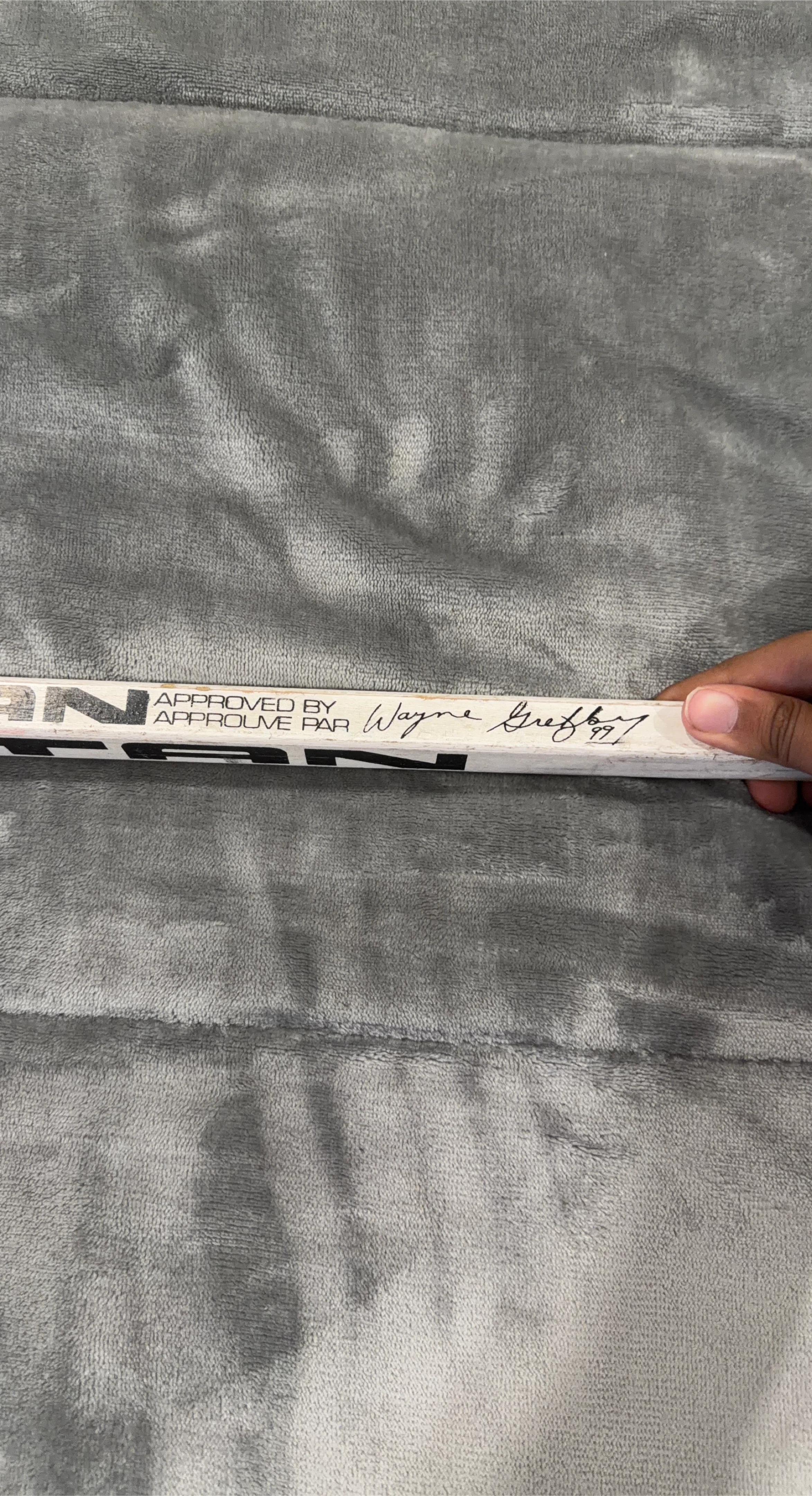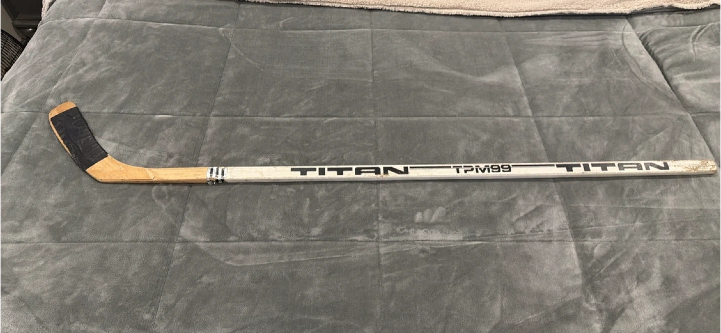 10Selling a Titan TPM99 hockey stick, approved by Wayne Gretzky! The stick shows some signs of use, but it's still in good shape for playing or as a collectible, most likely printed, not verified