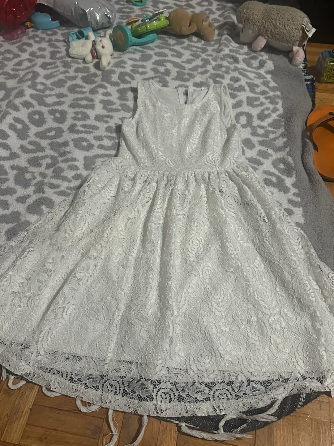 Beautiful white lace dress with a full skirt. Sleeveless design. Perfect for special occasions or parties! Number of dresses just used only 1 time .