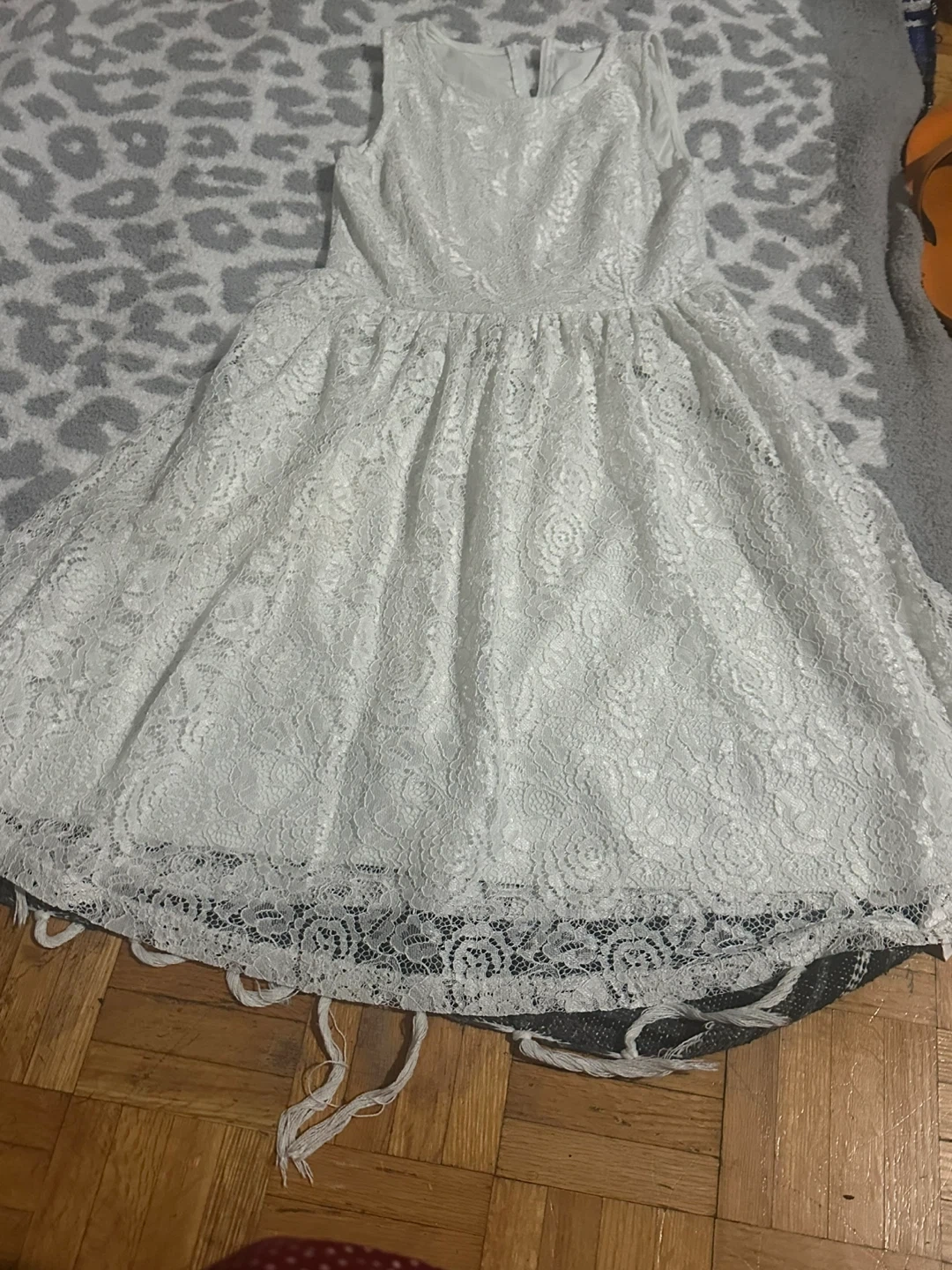 Beautiful white lace dress with a full skirt. Sleeveless design. Perfect for special occasions or parties! Number of dresses just used only 1 time .