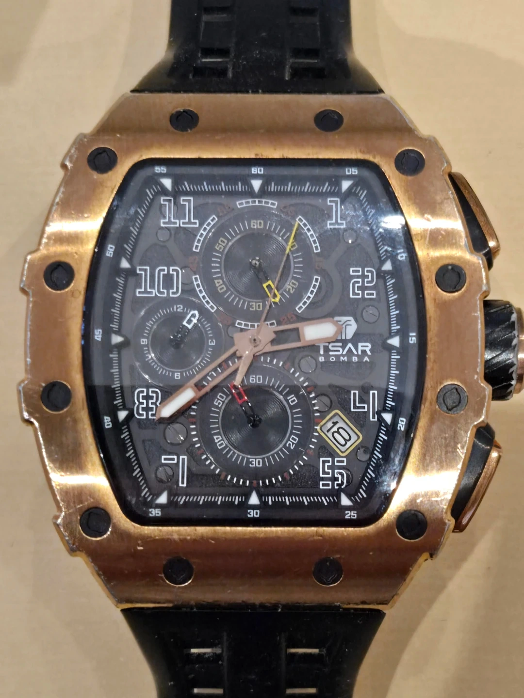 TSAR BOMBA Men's Rose Gold Chronograph Watch