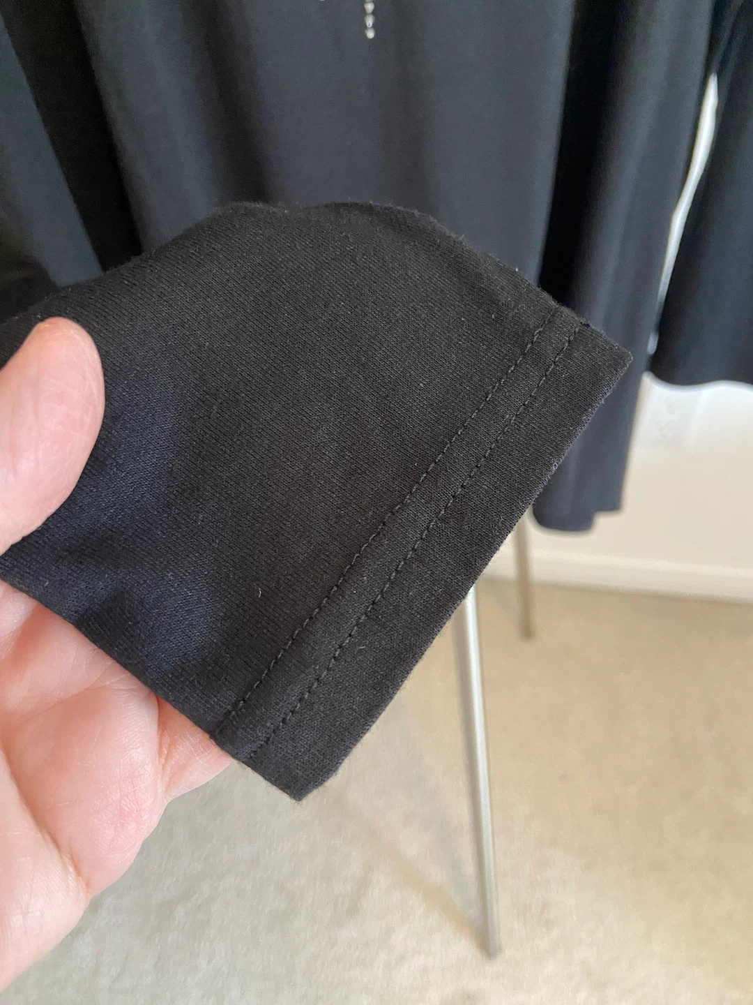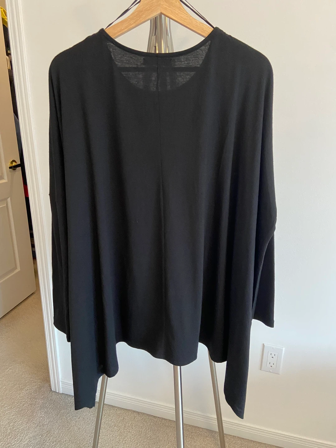 This is a black long-sleeve blouse from Suzy