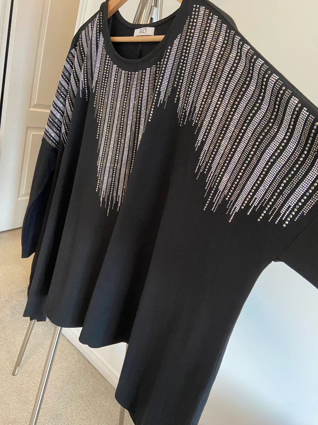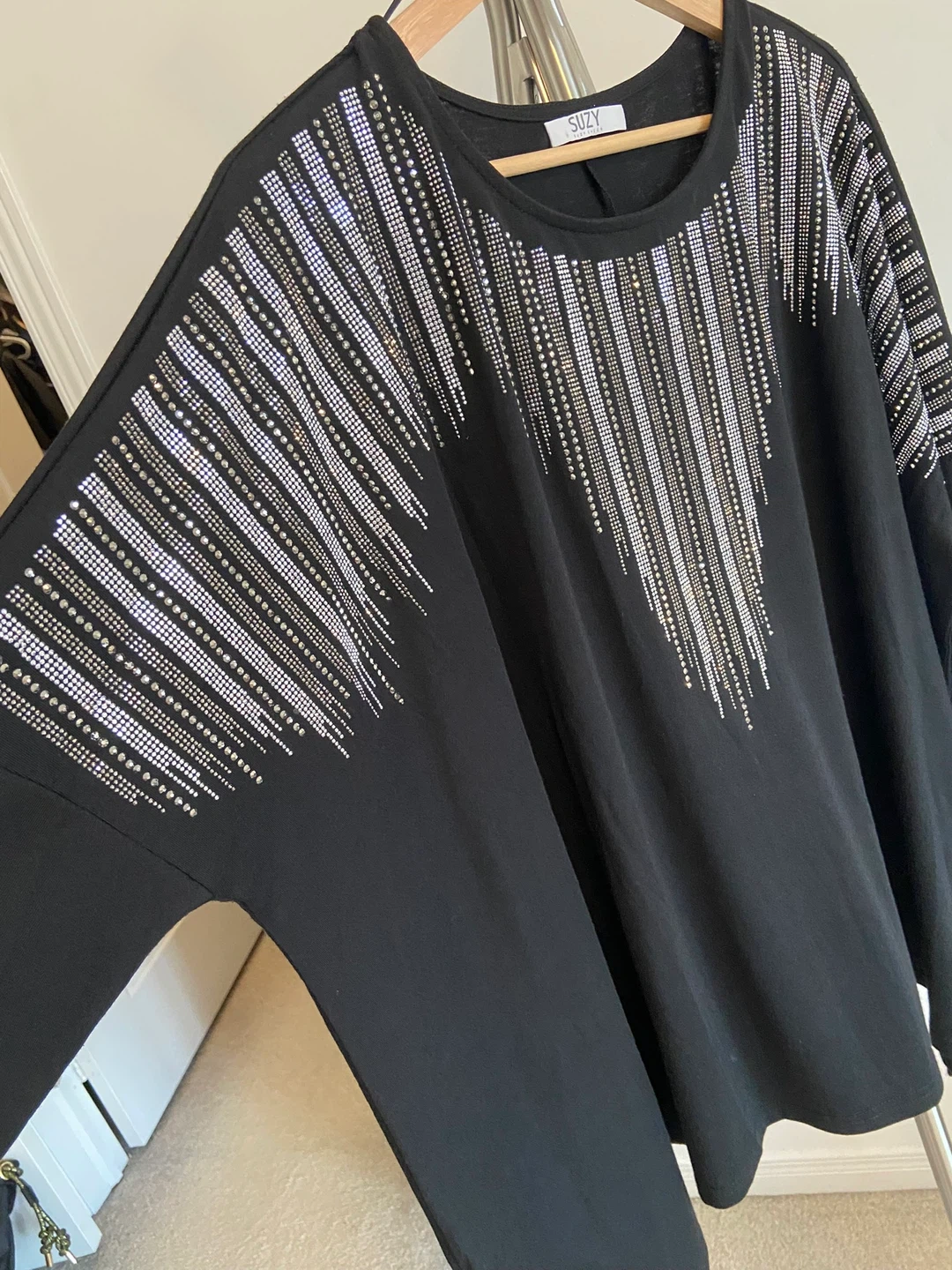 Suzy Women's Black Blouse with Rhinestone Embellishment
