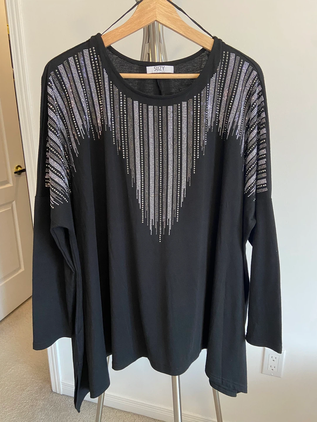Suzy Women's Black Blouse with Rhinestone Embellishment
