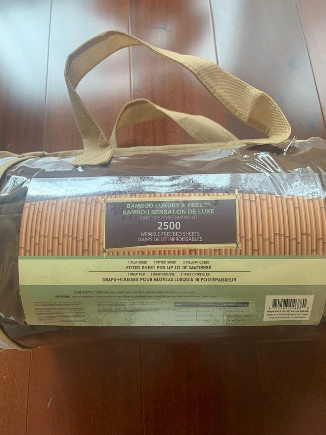 Indulge in luxury with this brand new Valoria Collection Elegance king-size sheet set, featuring a bamboo luxury and feel with 2500 wrinkle-free bed sheets, designed to fit mattresses up to 18 inches deep. This set includes 1 flat sheet, 1 fitted sheet, and 2 pillowcases, all in a sophisticated, neutral tone to complement any bedroom decor.