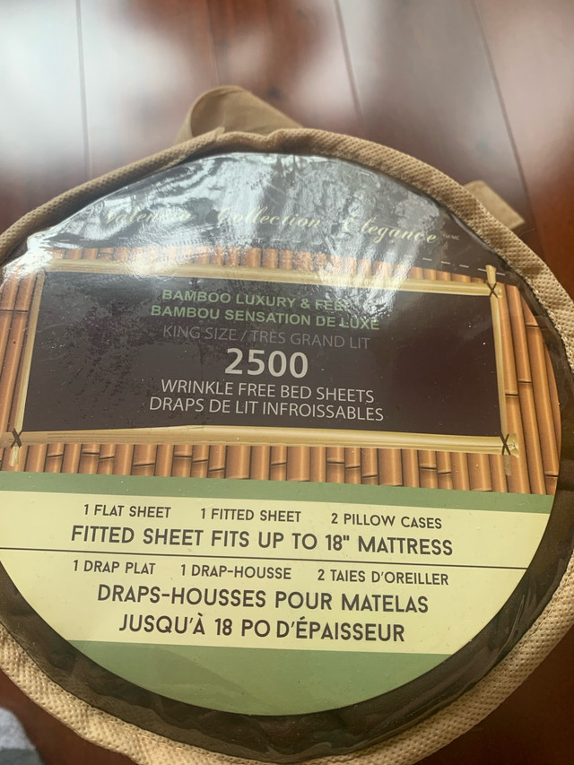 Indulge in luxury with this brand new Valoria Collection Elegance king-size sheet set, featuring a bamboo luxury and feel with 2500 wrinkle-free bed sheets, designed to fit mattresses up to 18 inches deep. This set includes 1 flat sheet, 1 fitted sheet, and 2 pillowcases, all in a sophisticated, neutral tone to complement any bedroom decor.