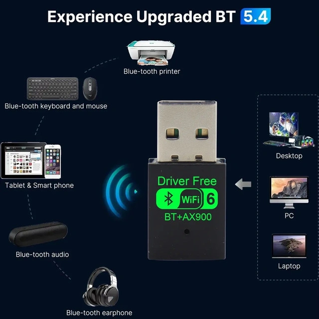 Boost your PC’s wireless capabilities with the AX900 USB Adapter, combining high-speed WiFi 6 and Bluetooth 5.4 in one compact dongle. It supports dual-band 2.4GHz & 5GHz connections and includes built-in drivers for easy setup — just plug it in, open the new drive, and run the installer.