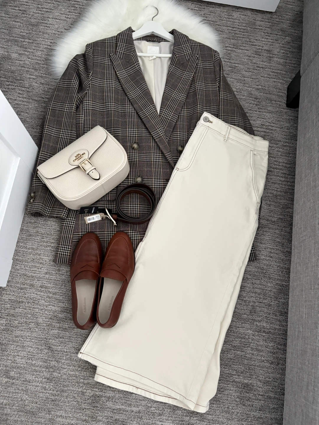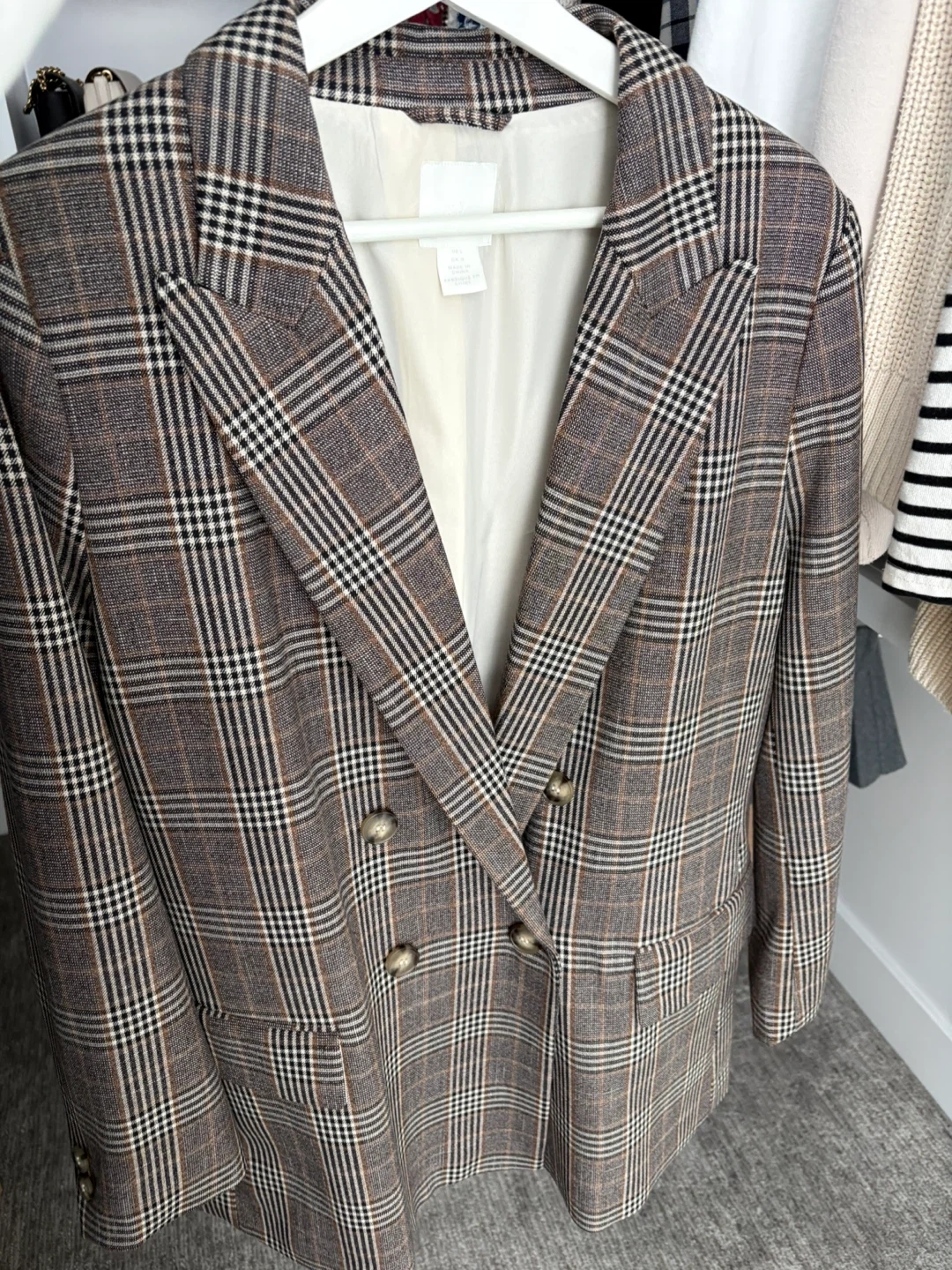 H&M Plaid Double-Breasted Blazer size L (12) *Brand new