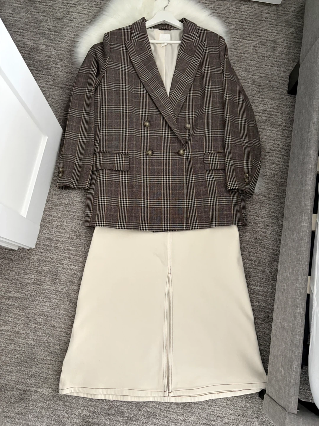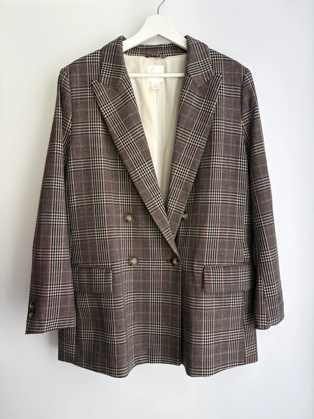 H&M Plaid Double-Breasted Blazer size L (12) *Brand new