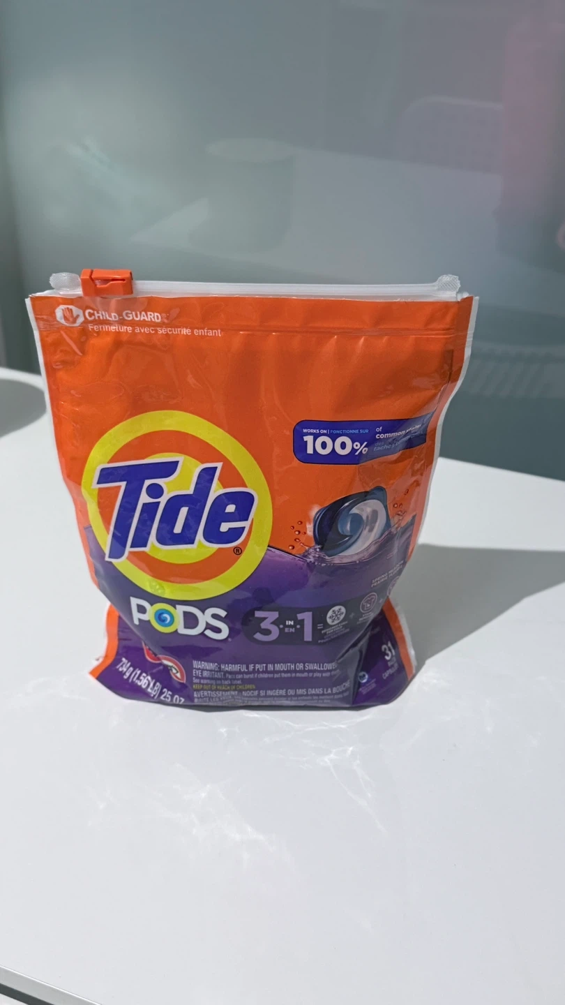 Tide Pods 3-in-1 laundry detergent comes in a resealable bag. I have about 20 left.