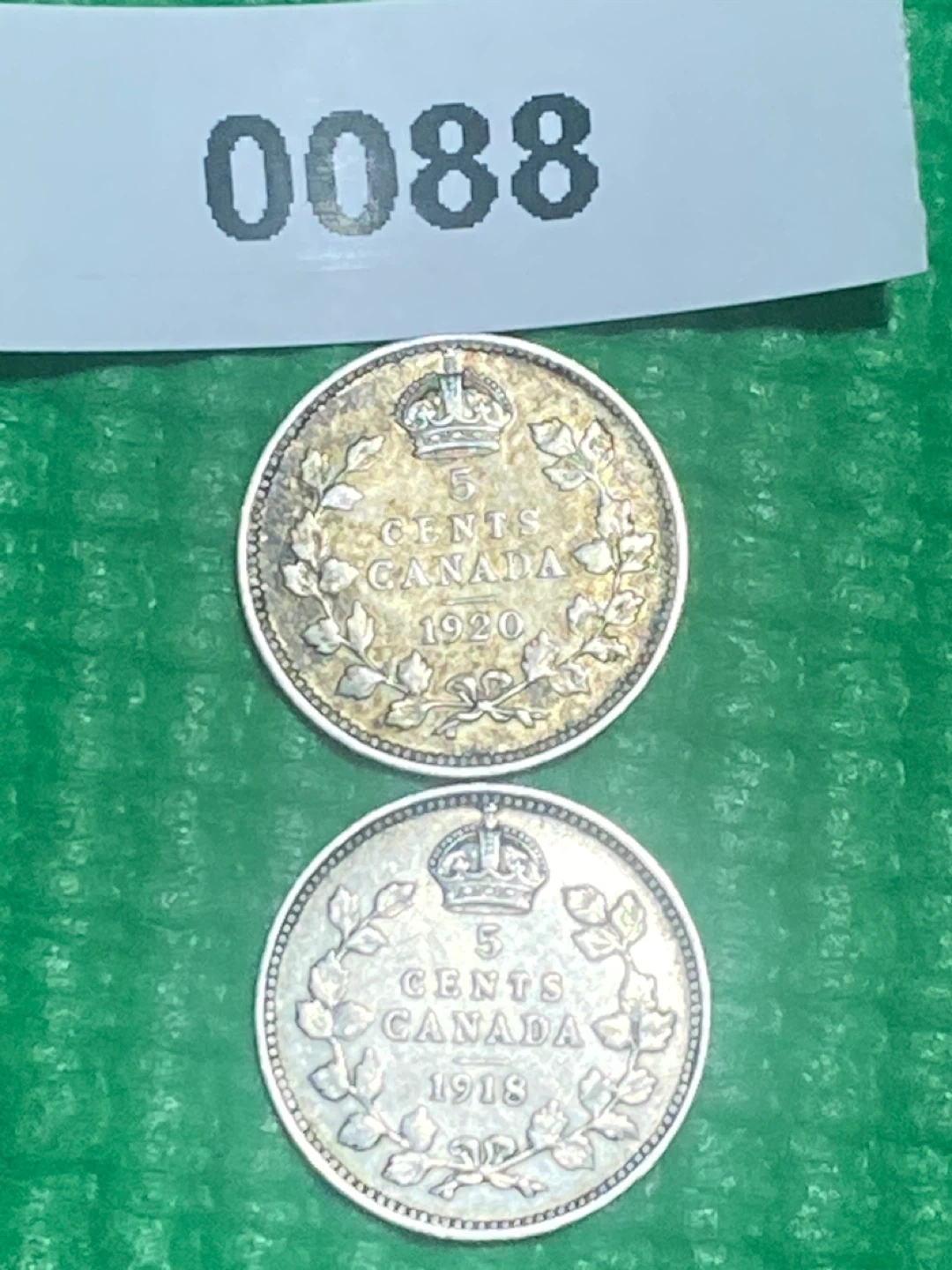 Buy & SellCanada silver 5 Cents Coins - 1918 and 1920Canada silver 5 Cents Coins - 1918 and 1920$45Two Canadian. Silver 5 cent coins. One dated 1918 and the other 1920. Both feature King George V.WHERE TO MEETCheck LocationView MapSELLERverifieddiamondCorso Italia89183 reviews0 chats·1 favorites·11 viewsSEND CHAT TO SELLERHi diamond! I’m interested in your listing.Hi diamond! I’m interested in your listing.Get the Karrot app to chatSign In to chat