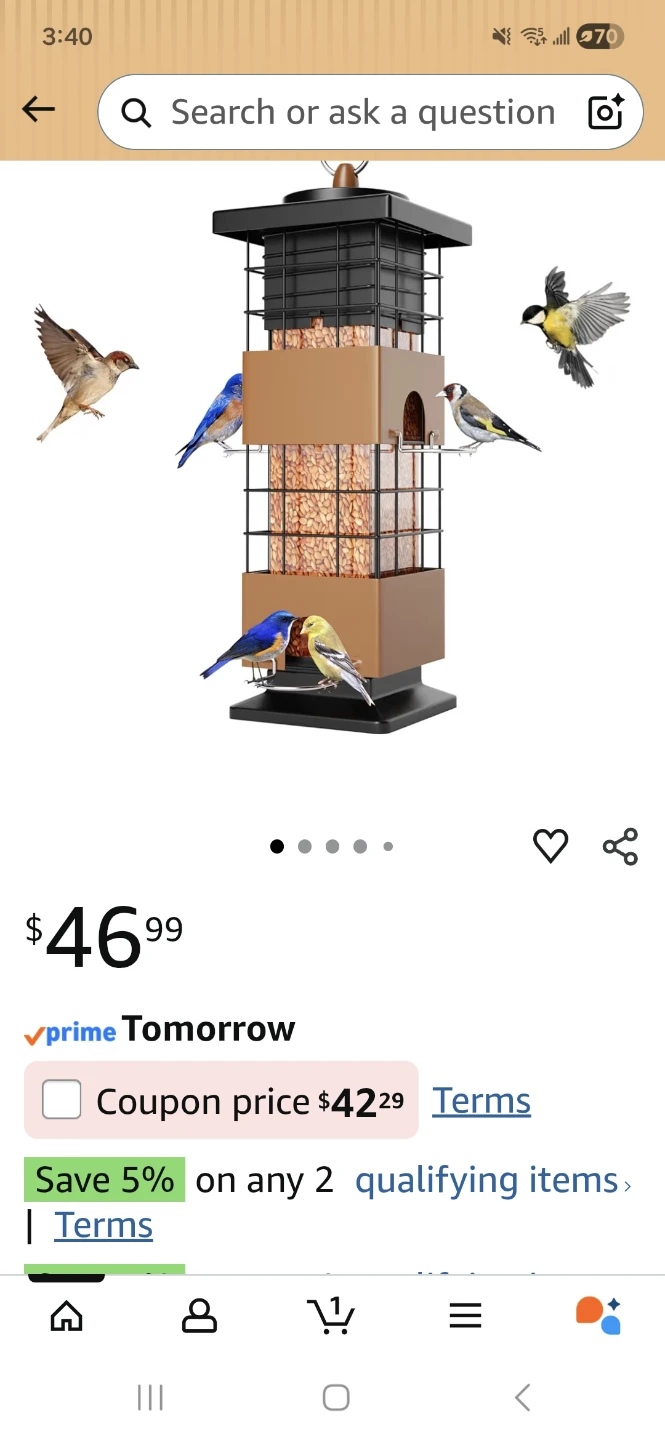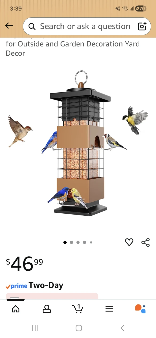 This outdoor garden bird feeder is designed for outside and garden decoration. It's made with metal and has a capacity to hold a good amount of bird seed. It's perfect for attracting a variety of birds to your yard!