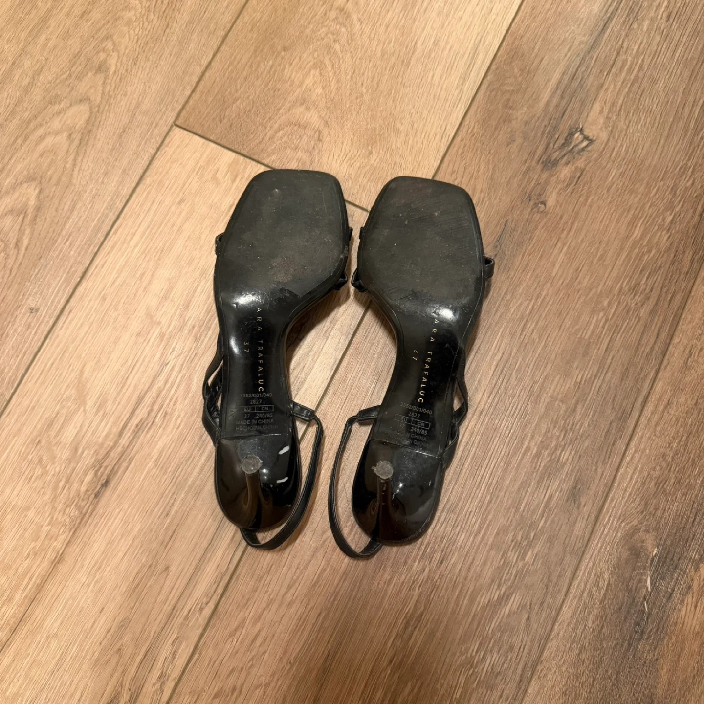 ZARA black heeled sandals with strappy detail. Square toe design. These heels have a stylish, minimalist look.