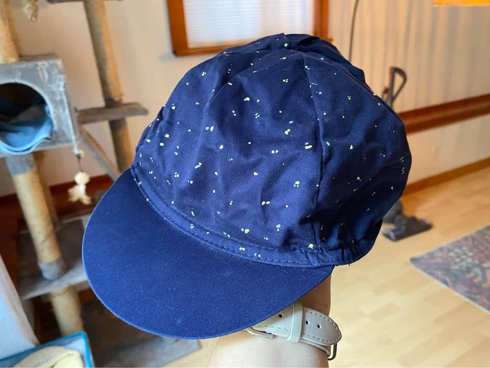Designed for cycling to keep the sun out of your eyes and protect you from the rain. Light and breathable, can easily be folded into your back pocket. Complete with a flexible cap visor. Made of 97% cotton and 3% spandex. Size- one size. Pick up at 17th and Manitoba.
