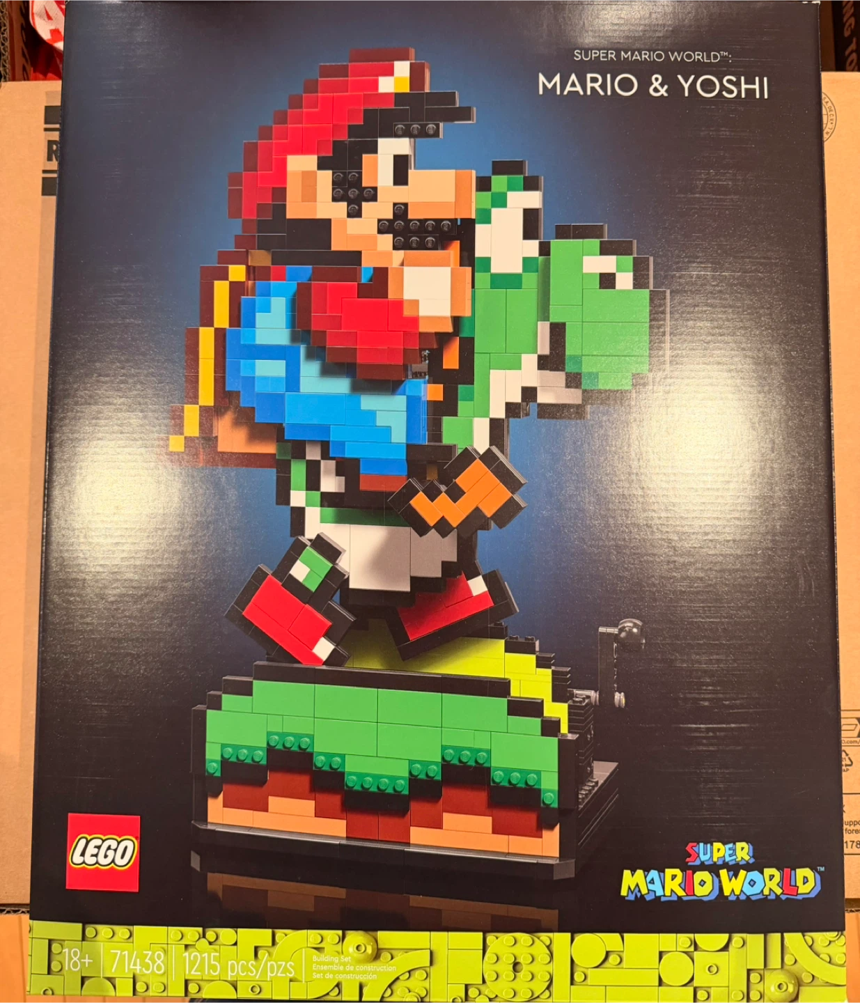 This is the LEGO Super Mario World Mario & Yoshi building set, set number 71438. It includes 1215 pieces for construction. It's a fun building challenge for any fan!