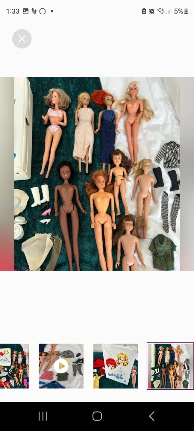 Buy & SellVintage Barbie bundleVintage Barbie bundle$450Authentic Barbie collection with clothes. Some older 50s. Some 80s. Sold as a lot not separately. WHERE TO MEETStarbucksView MapSELLERChanelDowntown68293 reviews0 chats·0 favorites·6 viewsSEND CHAT TO SELLERHi Chanel! I’m interested in your listing.Hi Chanel! I’m interested in your listing.Get the Karrot app to chatSign In to chat