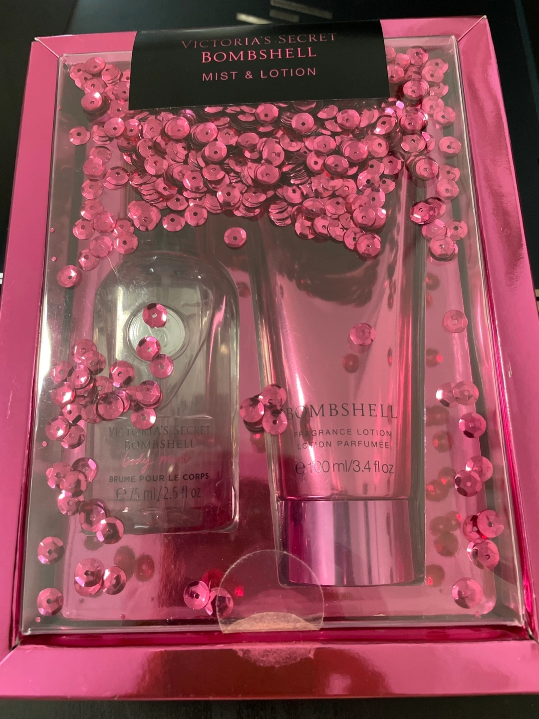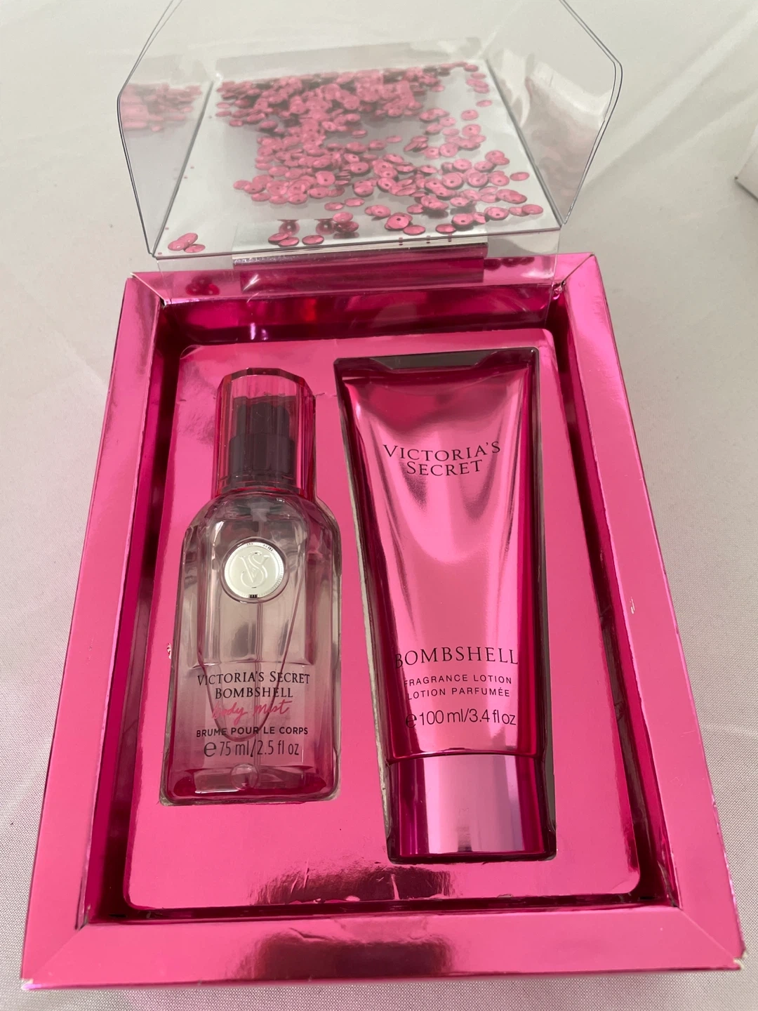 Selling a brand new Victoria's Secret Bombshell Mist & Lotion set! It includes a 75ml/2.5 fl oz body mist and a 100ml/3.4 fl oz fragrance lotion. The set comes in its original box, perfect as a gift or for yourself. Pickup only.