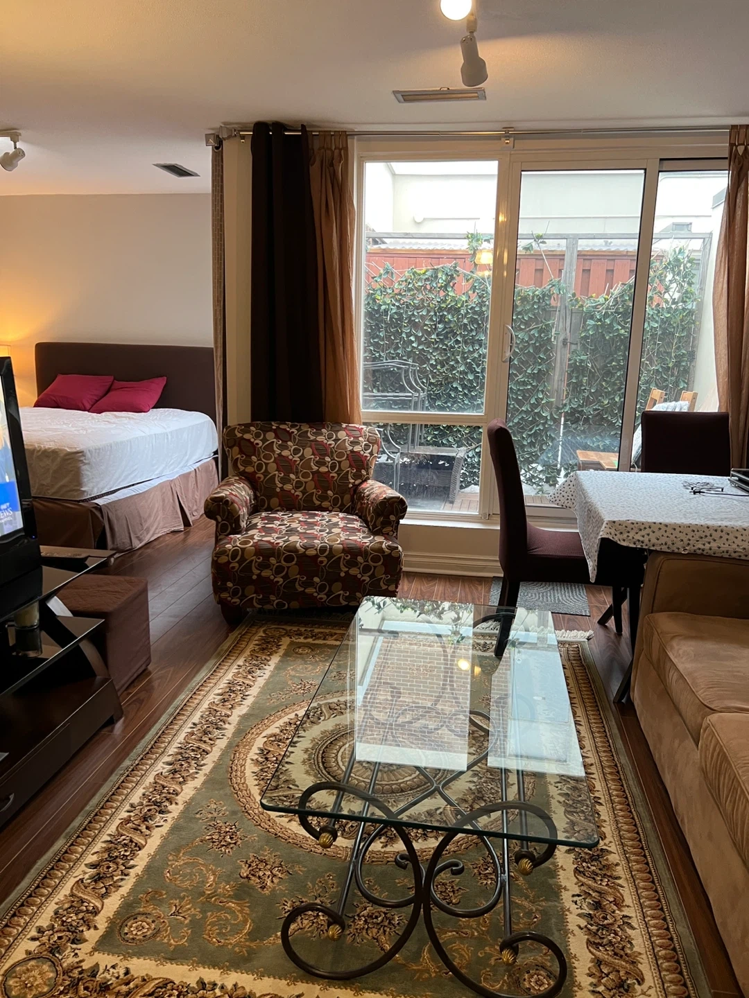 This beautiful top floor furnished studio is located in the central Etobicoke area, 7 minutes to Kipling subway station. The unit offers living area with sofa bed, one arm chair, coffee table, tv stand. Lot's of sunshine, private safe balcony, kitchenette, wifi, Queen size bed, full bathroom, laundry.