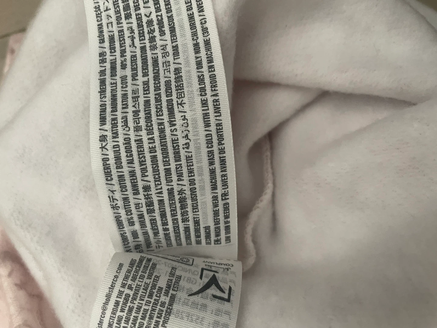 This Hollister sweatshirt is designed for an off-the-shoulder look. It's made with a blend of 60% cotton and 40% polyester. Machine wash cold with like colours.
