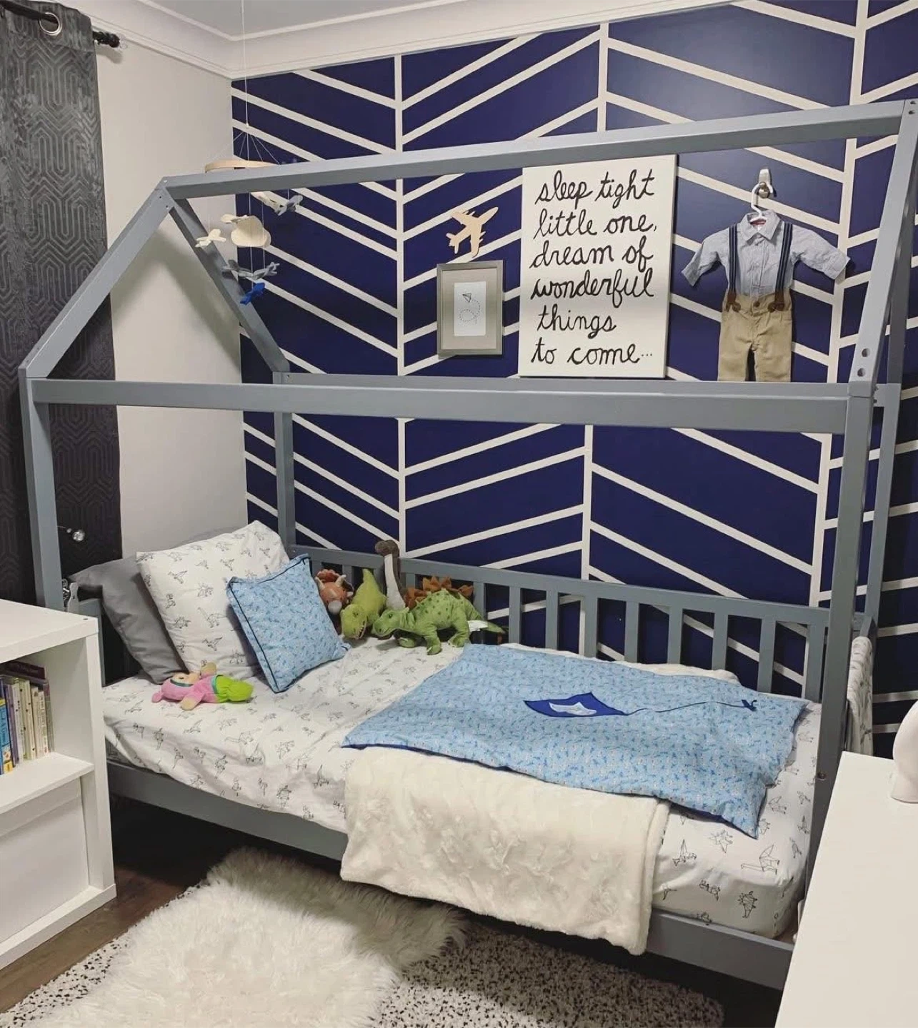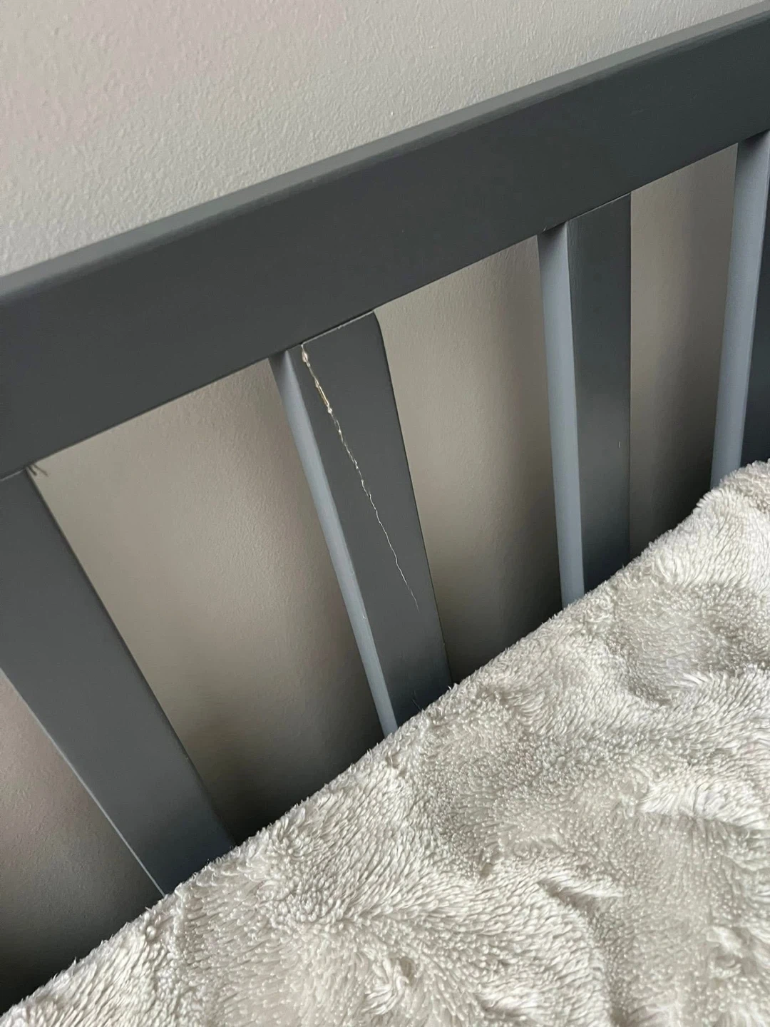 Selling a cute grey house frame toddler bed! It's in good condition, perfect for transitioning your little one to their own bed. There is a scratch on the side as shown in the photos.