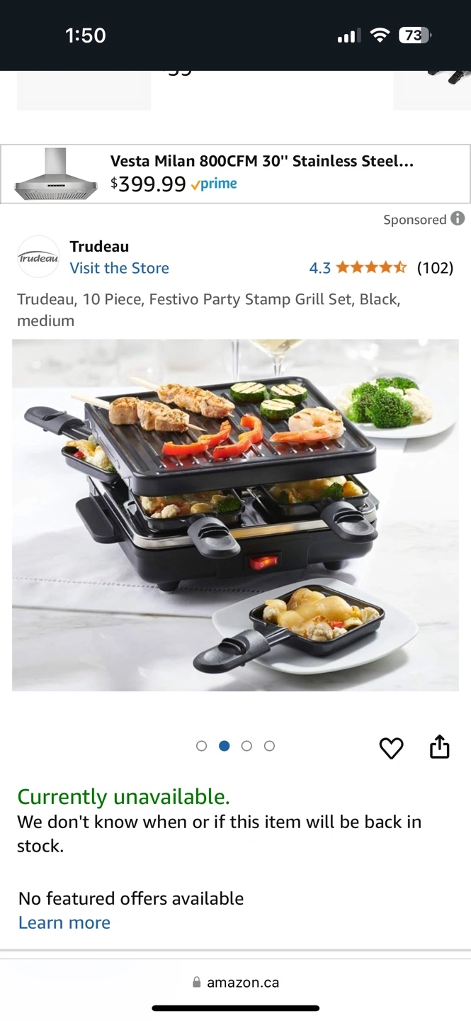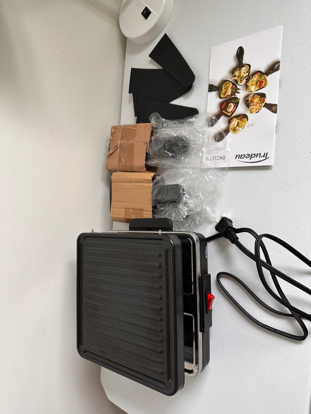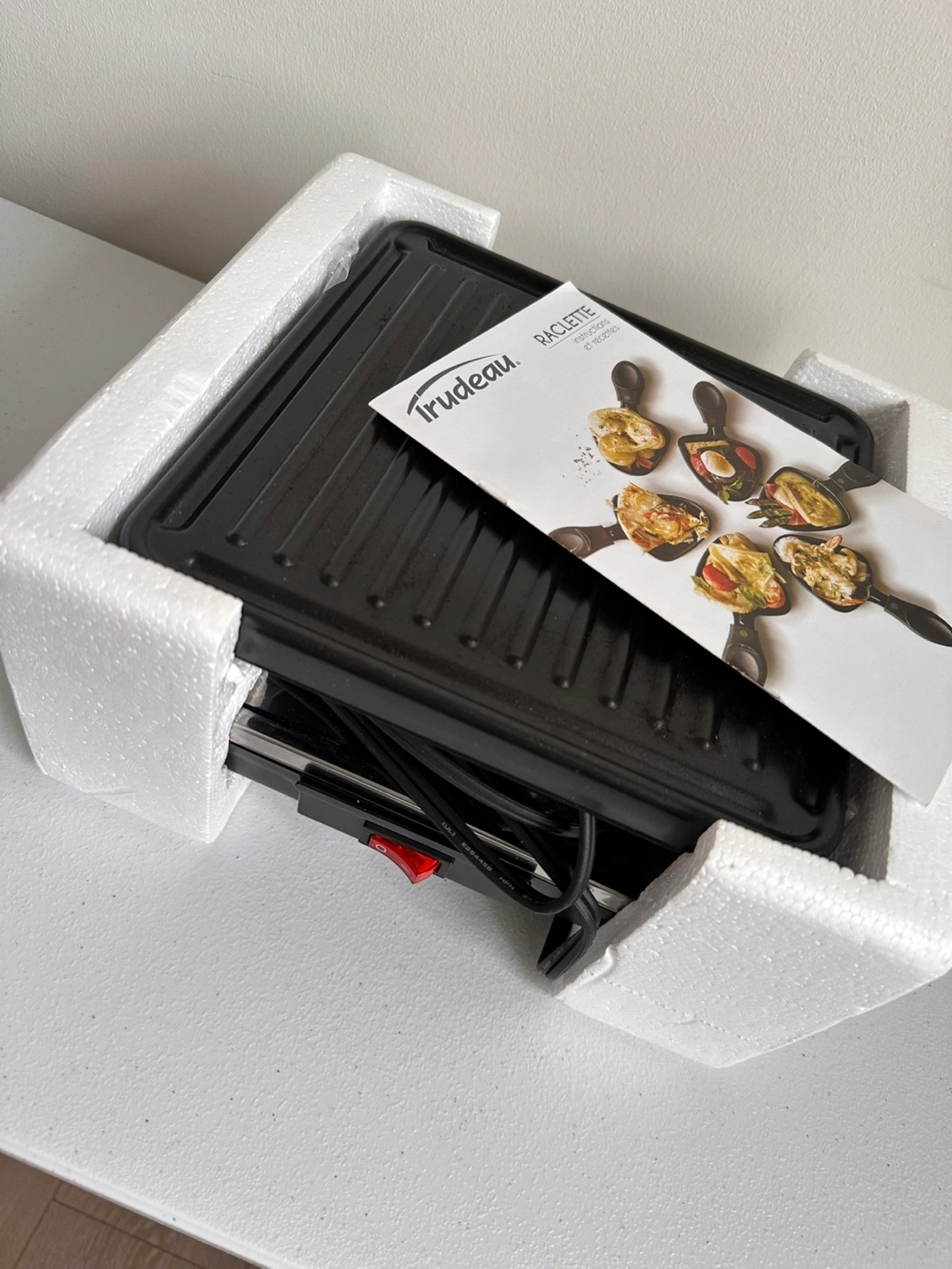 Brand new Trudeau party grill set. Four non-stick pans never used. Includes instruction booklet and with original packaging .