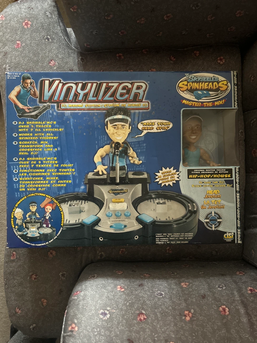 This Spinheads Vinylizer lets you be a DJ. Mix tracks and transform figures. Includes one DJ-style figure. Other figures available, price is negotiable for bulk buys.