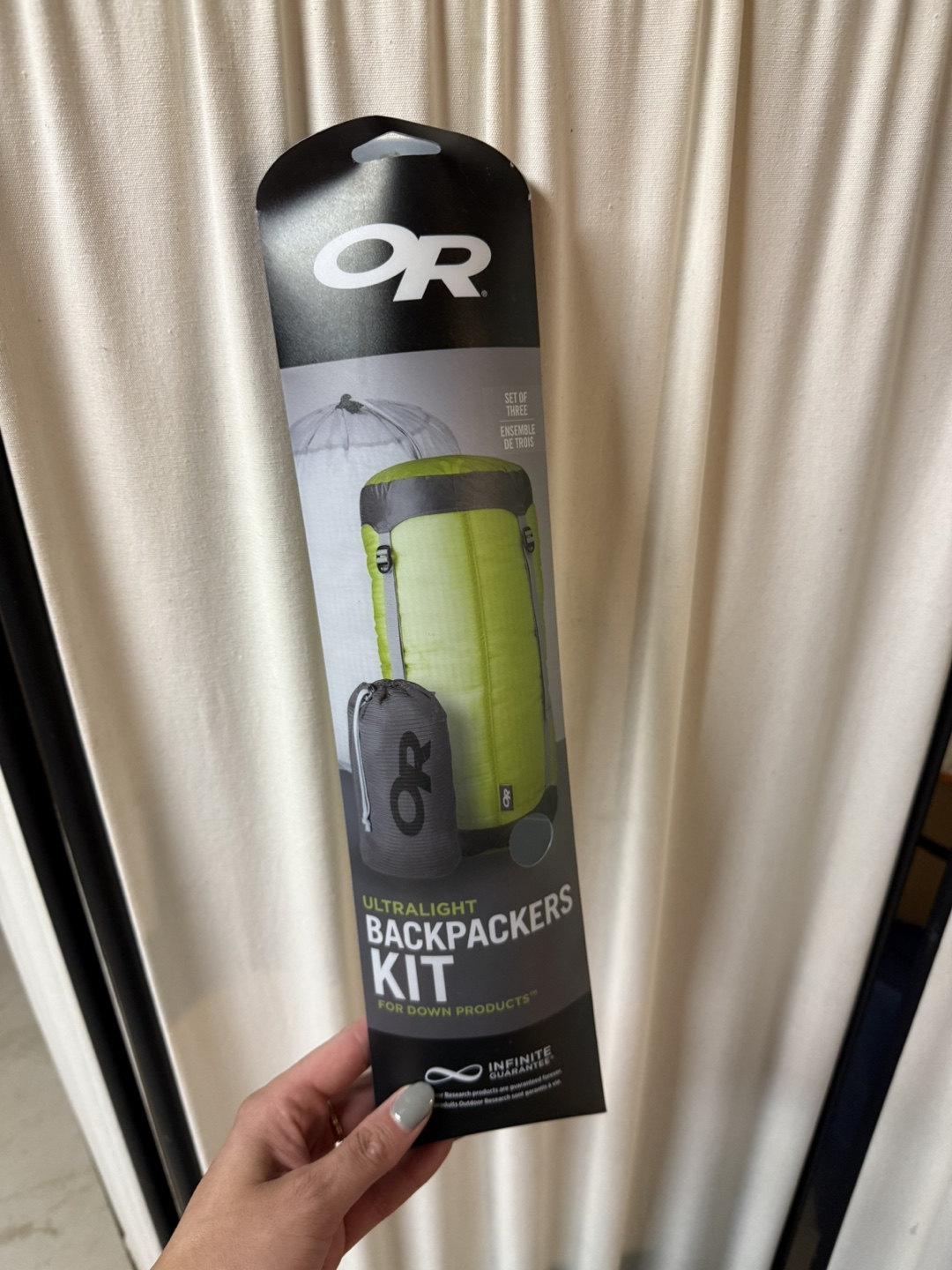 Selling a OR (Outdoor Research) Ultralight Backpackers Kit & Backpack. This kit is designed for down products and includes three pieces. Perfect for keeping your gear organized and protected on your next outdoor adventure