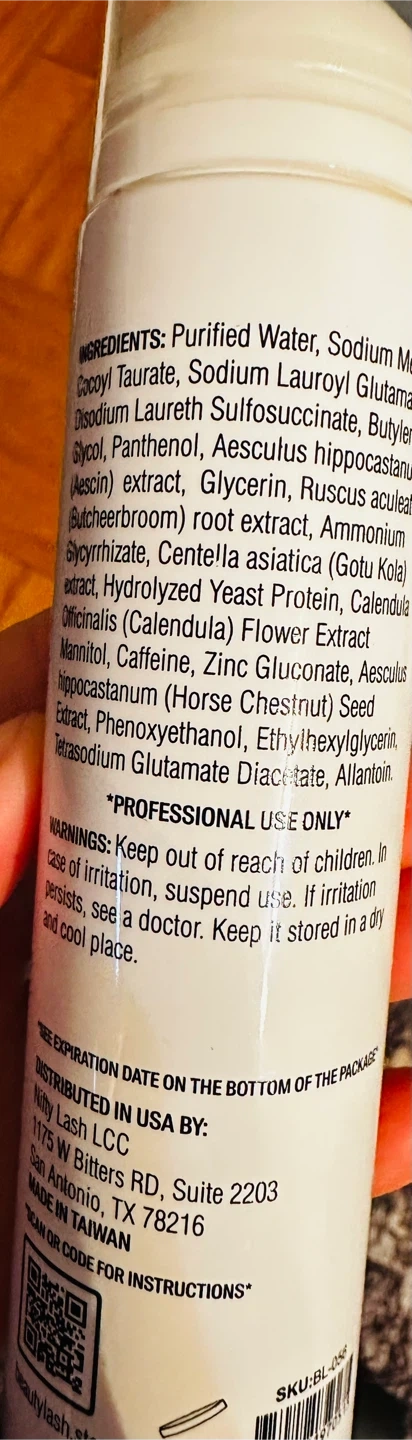 This is Beauty Lash BL Lash Mousse, a shampoo formulated for eyelashes. It's a 3.4 fl oz bottle. The expiration date is 10/27/2025.