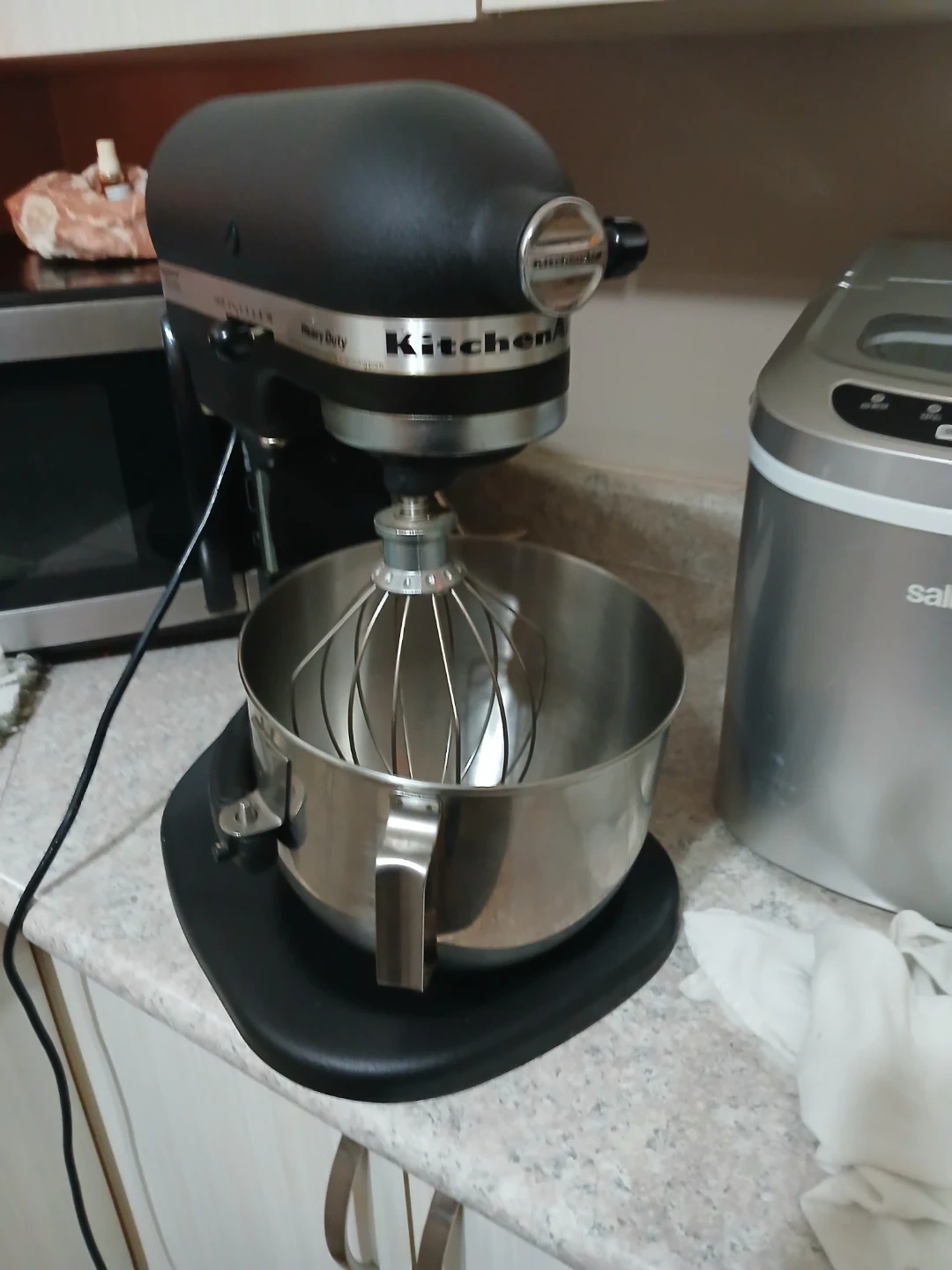 Selling a KitchenAid Heavy Duty stand mixer in black. It's in great shape and ready for all your baking needs! This model is known for its robust performance and durability. Perfect for making large batches of dough or whipping up delicious desserts