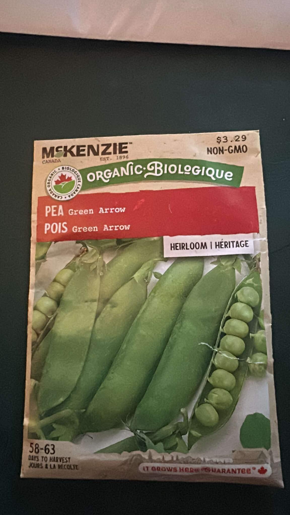 Selling 3 packs of McKenzie Organic Green Arrow Pea seeds For $0.75 each! This is a heirloom variety. The package says it takes 58-63 days to harvest. Originally priced at $3.29