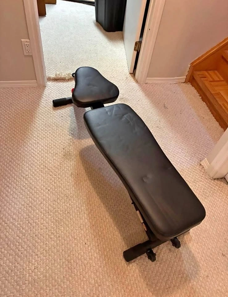 Sturdy Inspire adjustable weight bench for home workouts. Great for lifting weights, doing crunches, or whatever else you need a bench for. Super comfy padding too!