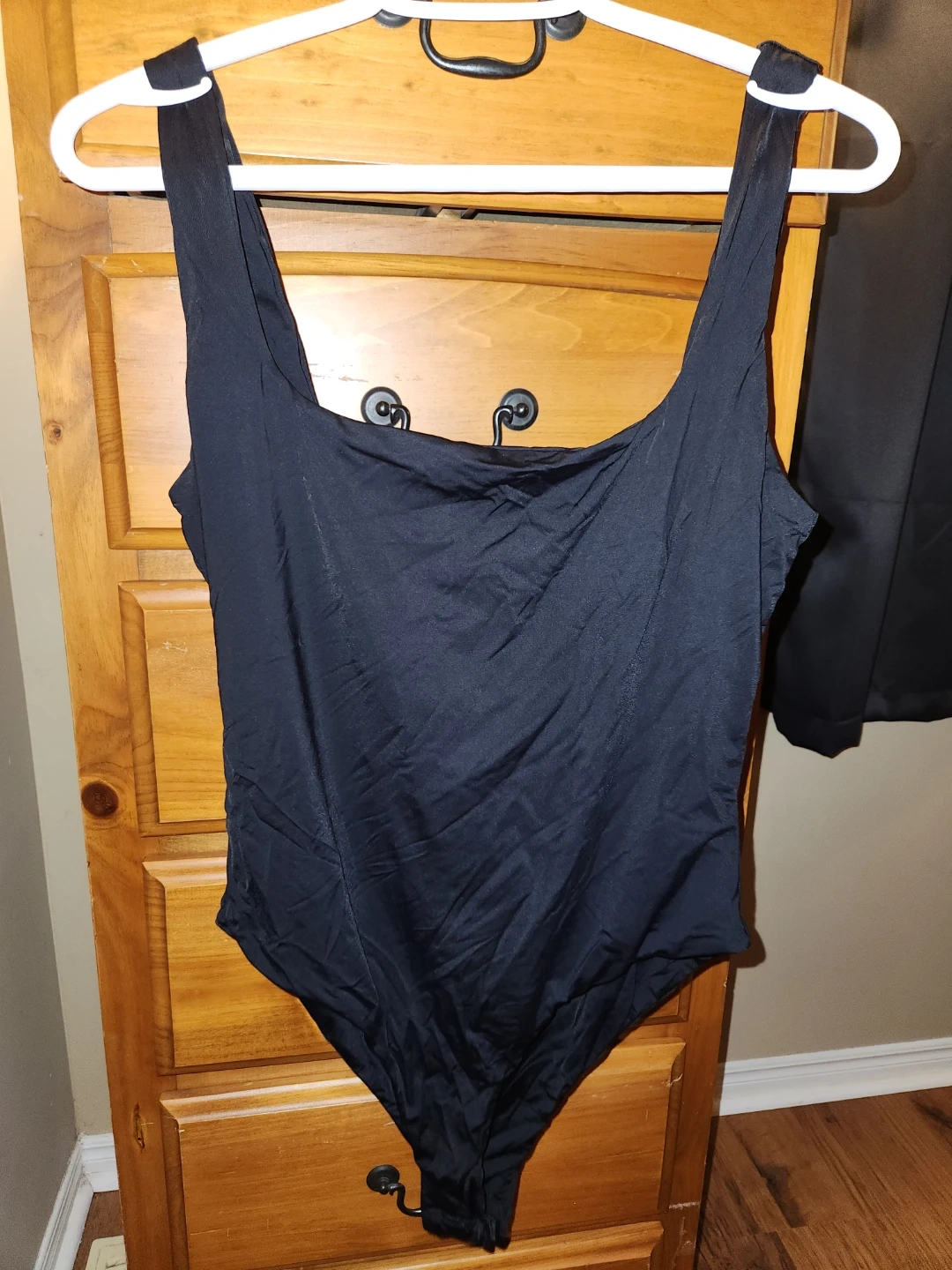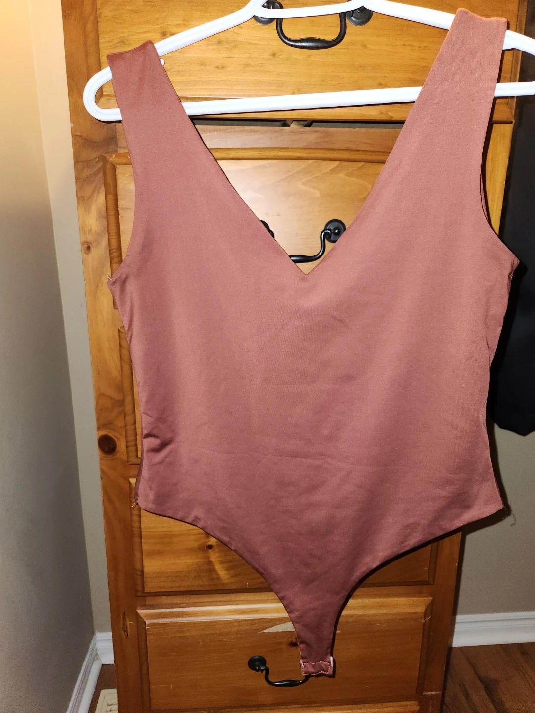 This is a lot of two bodysuits from SHEIN. One is in a rose mauve colour and the other is white. Both are size Large and made of a stretchy material. They feature a V-neck and square neck design respectively.