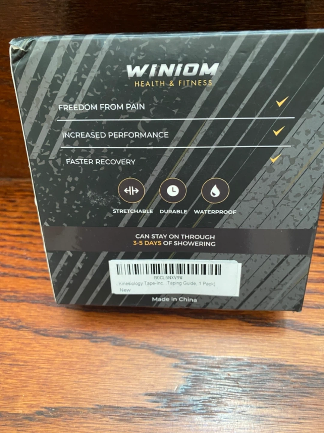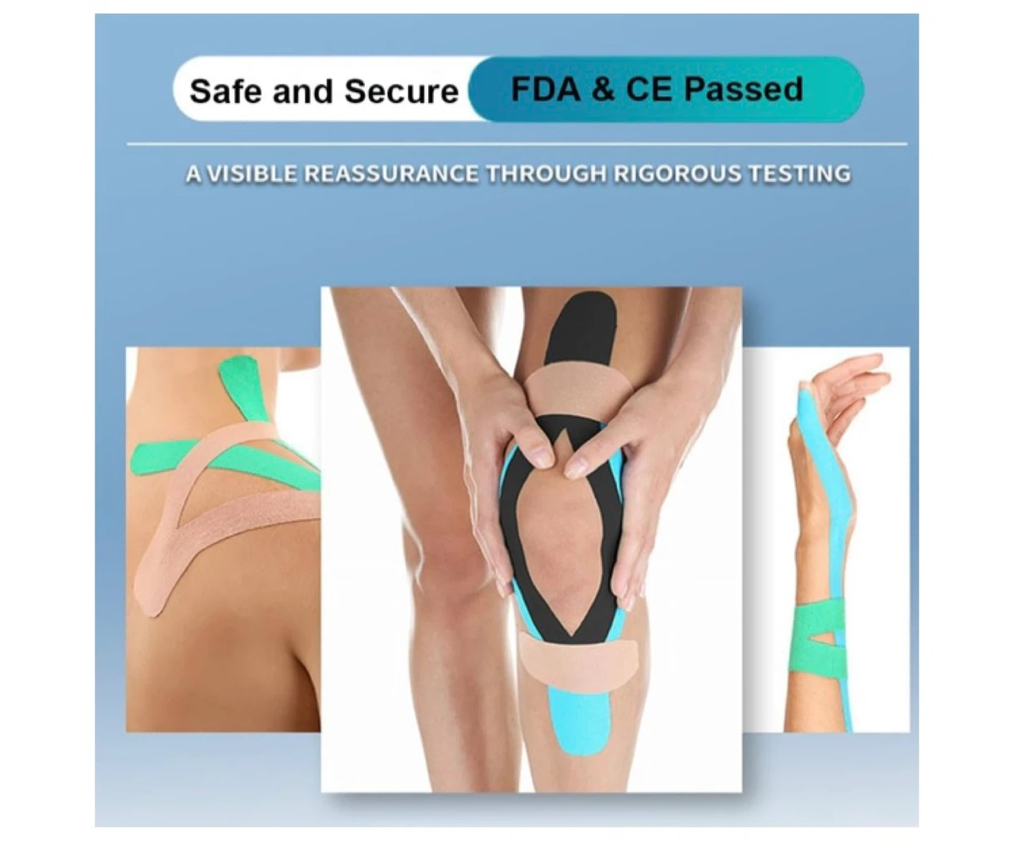 This kinesiology tape is designed for pain relief and support. It's stretchable, durable, and waterproof, and can stay on through 3-5 days of showering. It's pre-cut for easy application on various body parts.