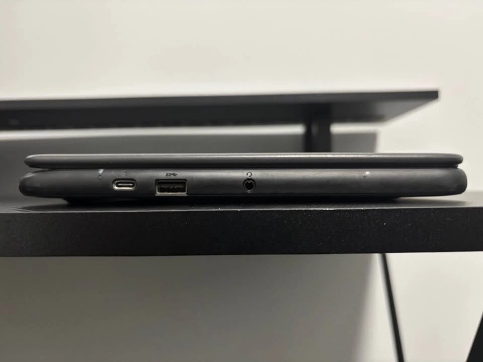 Selling a durable Dell Chromebook 11 (Model 3100). This is a ruggedized model designed for students and school use, with rubberized edges and a spill-resistant keyboard. Works perfectly and has been factory reset. The screen is clear with no cracks, and the keyboard and trackpad are clean and fully responsive. Features an 11.6-inch display with a 180-degree hinge, 2x USB-C ports (supports fast charging), 2x USB-A ports, a headphone jack, and a MicroSD card slot. Includes the original Dell USB-C charger. Great reliable laptop for kids, schoolwork, or general web browsing.