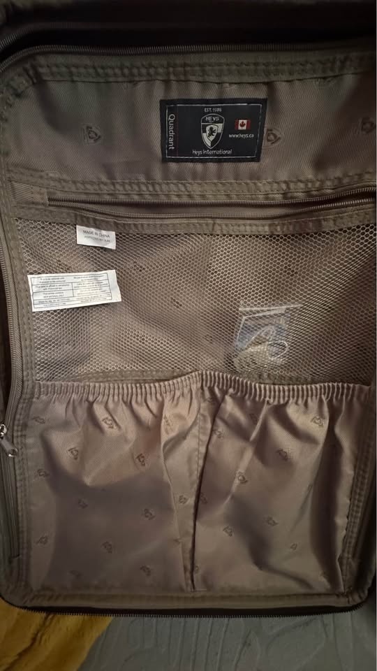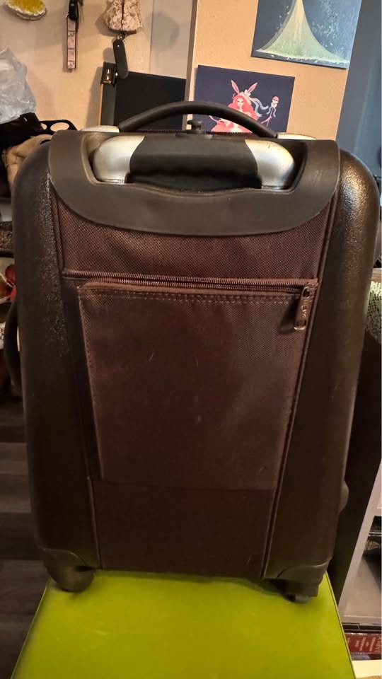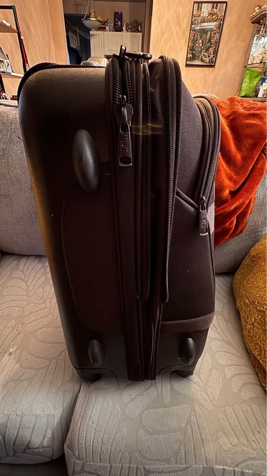 21.5” Carry on, 26” upright, expandable zipper to create more packing space. Has 360 degree spinner wheels, bottom handle. Inside has pockets slots for shoes along with mesh pockets to separate items. One side has fully zipped off compartment to separate space within. Also has 2 outer pockets that are zipped. Will include a luggge lock that was never used, kept in the bag it came in with instructions. Brown Checkered design. Has a couple little scraps on a plastic bearing side but in perfect working condition! Southside pick up, smoke free home, cash only please.