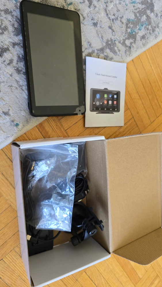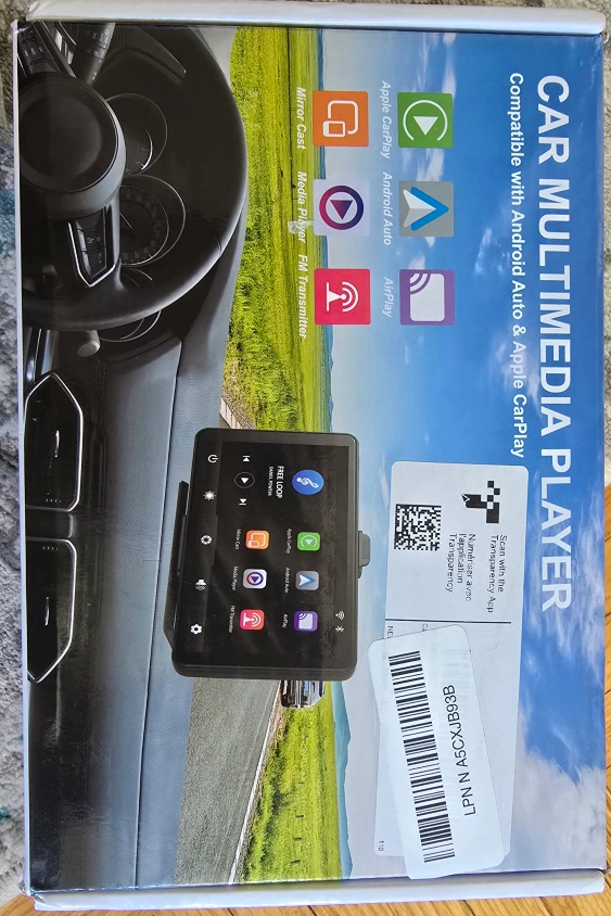 Selling a 7-inch car multimedia player compatible with both Android Auto and Apple CarPlay. It comes with all the necessary components and accessories, including the box and instructions. It also features Mirror Cast and FM Transmitter. Perfect for upgrading your car's entertainment system!