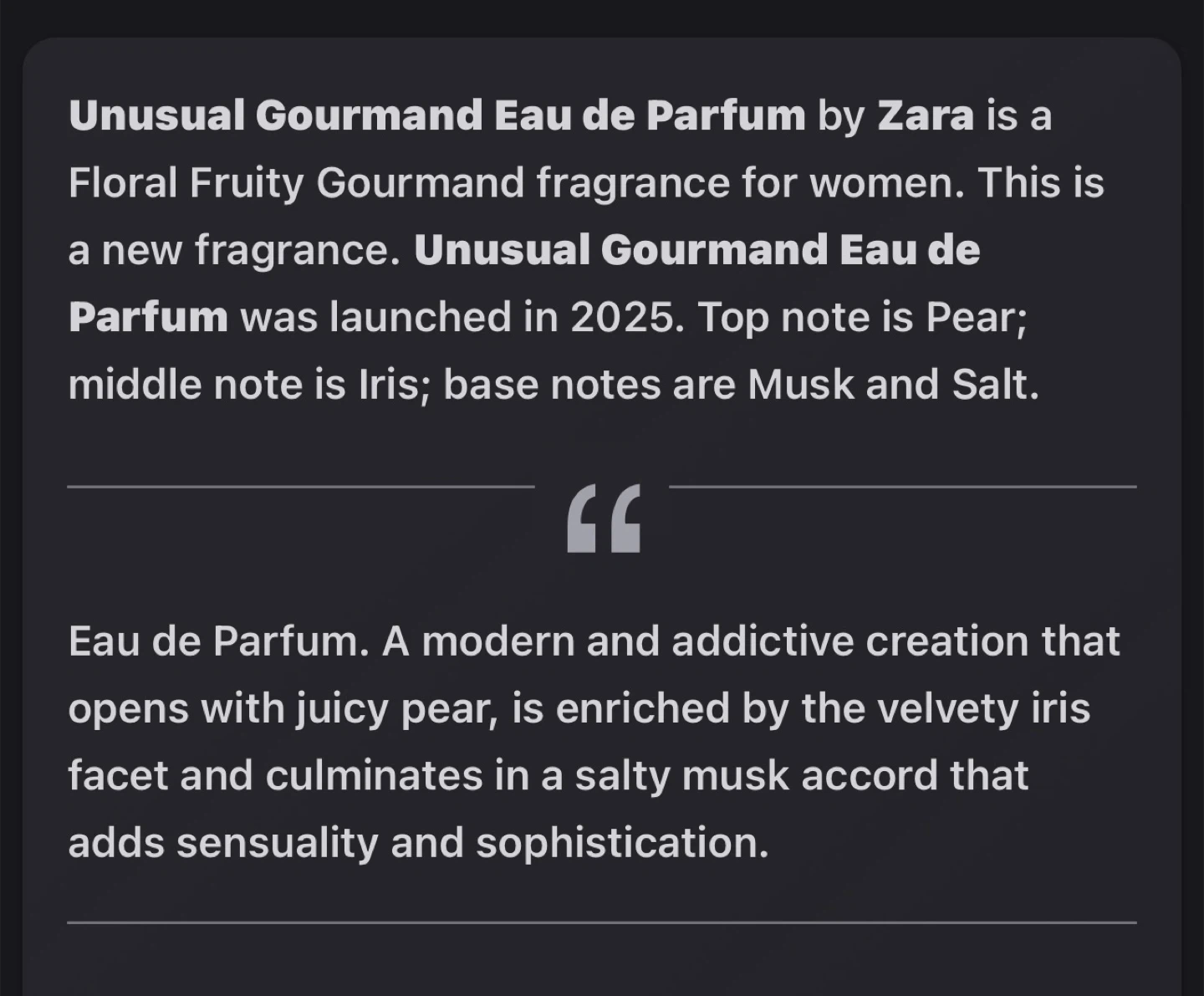 Zara Unusual Gourmand EDP - $30 - compared to Ariana Grandes God is a Woman