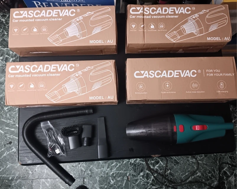 Cascadevac Cordless handheld vacuum cleaner. Compact and lightweight design. Strong suction and long battery life. Active noise reduction. Dual-use for car and home.