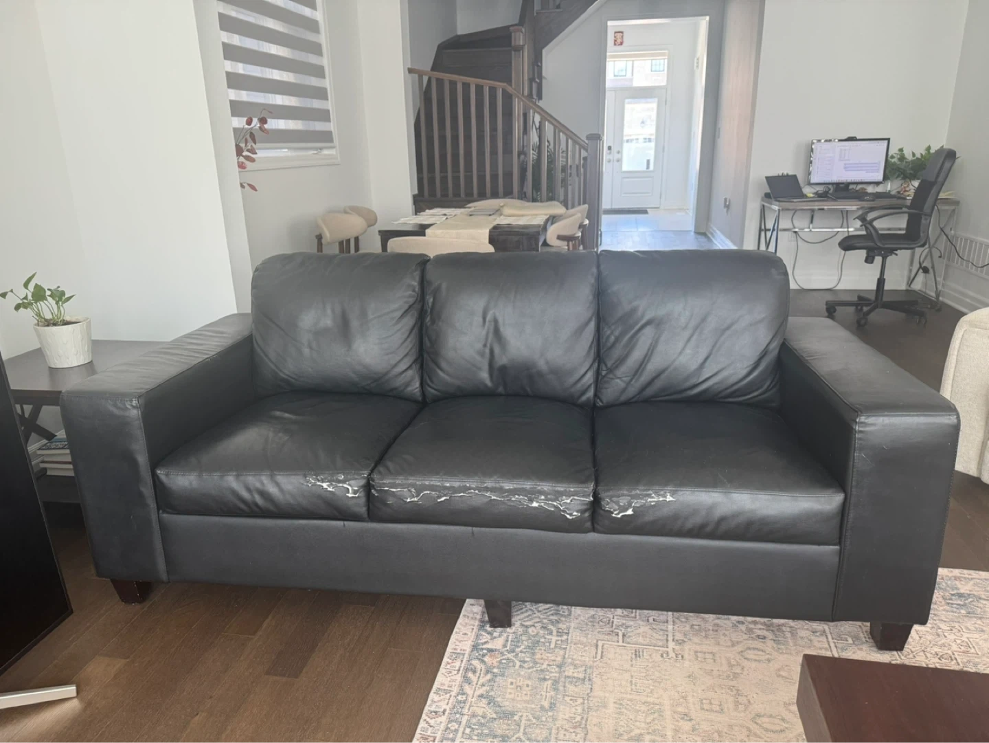 visible wear that can be fixed with repair kits. rest of the areas of couch are pure leather and have no wear and tear.
